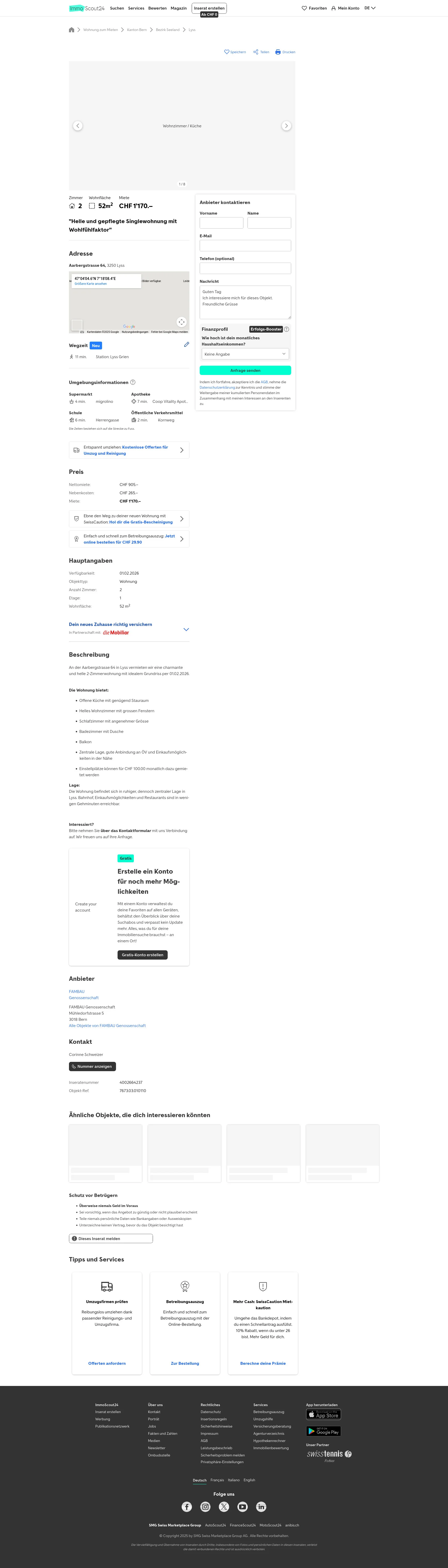 | Rent | CHF 1,170 /mo |