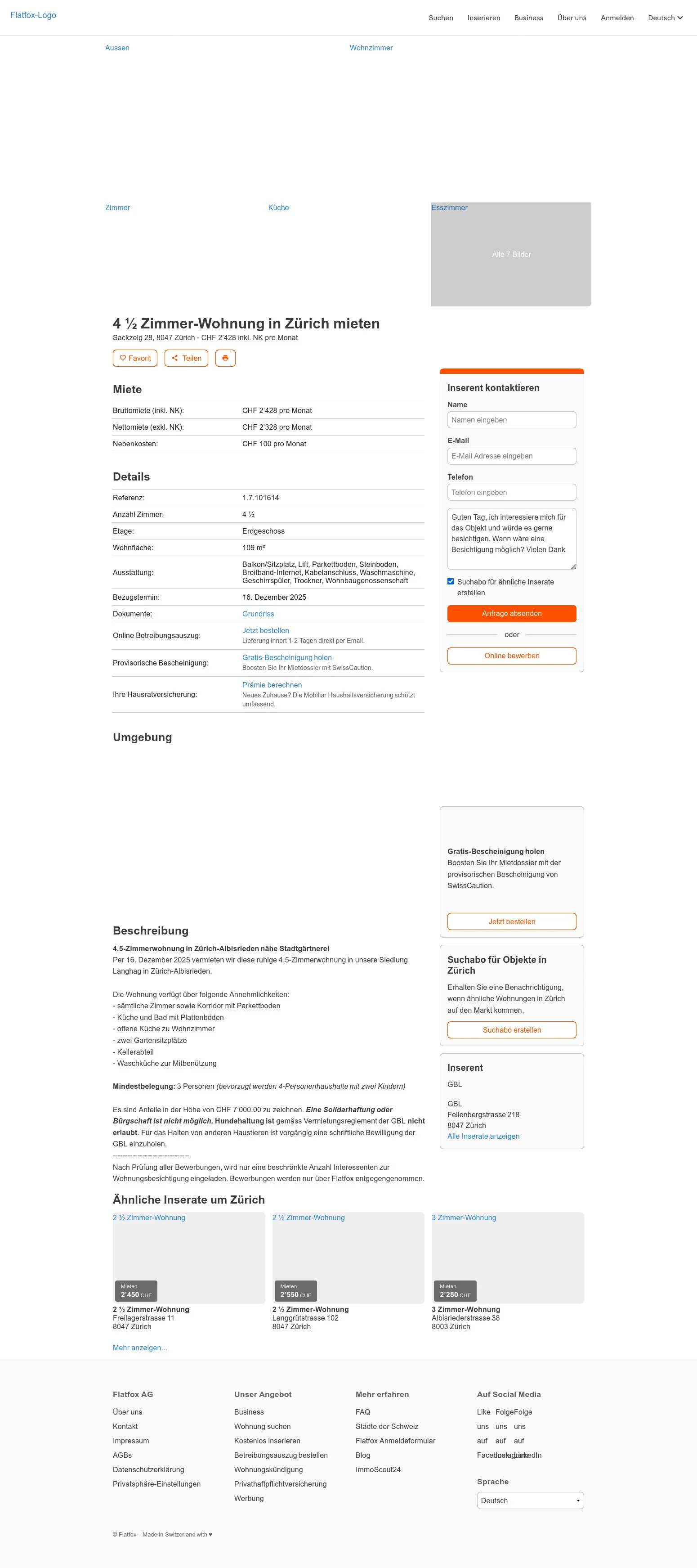 Nach Prüfung aller Bewerbungen, wird nur eine beschränkte Anzahl Interessenten zur Wohnungsbesichtigung eingeladen. Bewerbungen werden nur über Flatfox entgegengenommen.