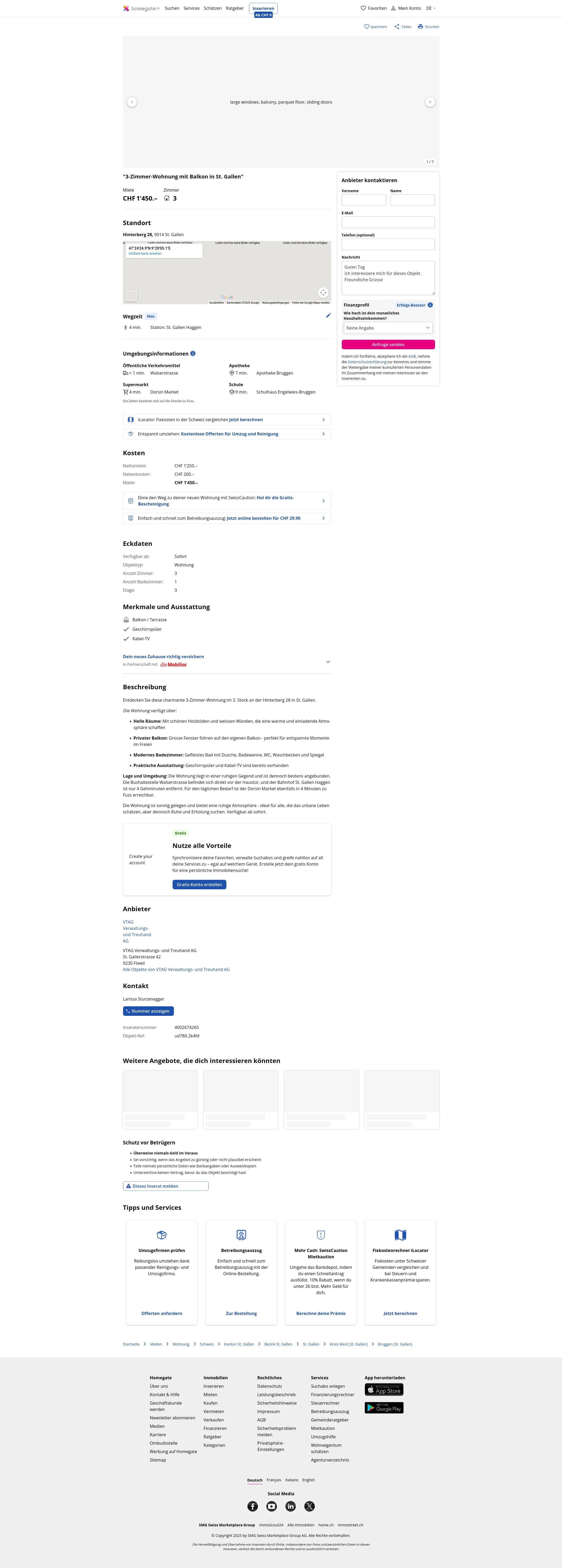 Lage und Umgebung: Die Wohnung liegt in einer ruhigen Gegend und ist dennoch bestens angebunden. Die Bushaltestelle Walserstrasse befindet sich direkt vor der Haustür, und der Bahnhof St. Gallen Haggen ist nur 4 Gehminuten entfernt. Für den täglichen Bedarf ist der Dorsin Market ebenfalls in 4 Minuten zu Fuss erreichbar.