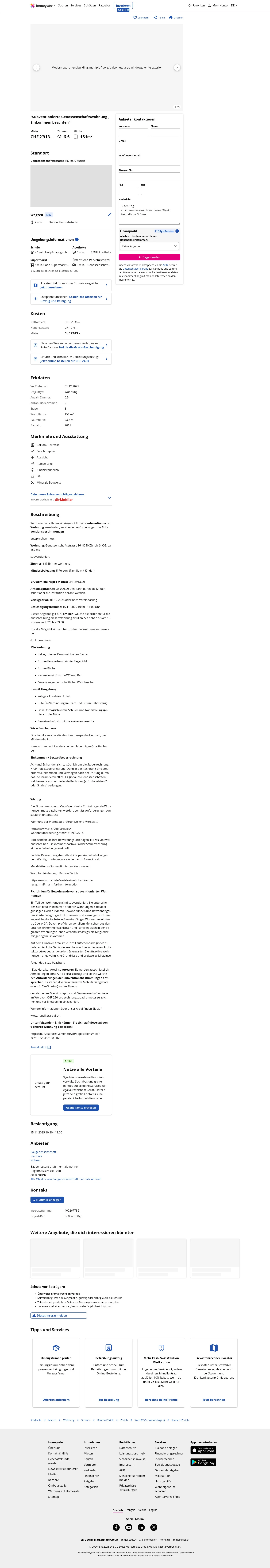 Wohnung: Genossenschaftsstrasse 16, 8050 Zürich, 3. OG, ca. 152 m2