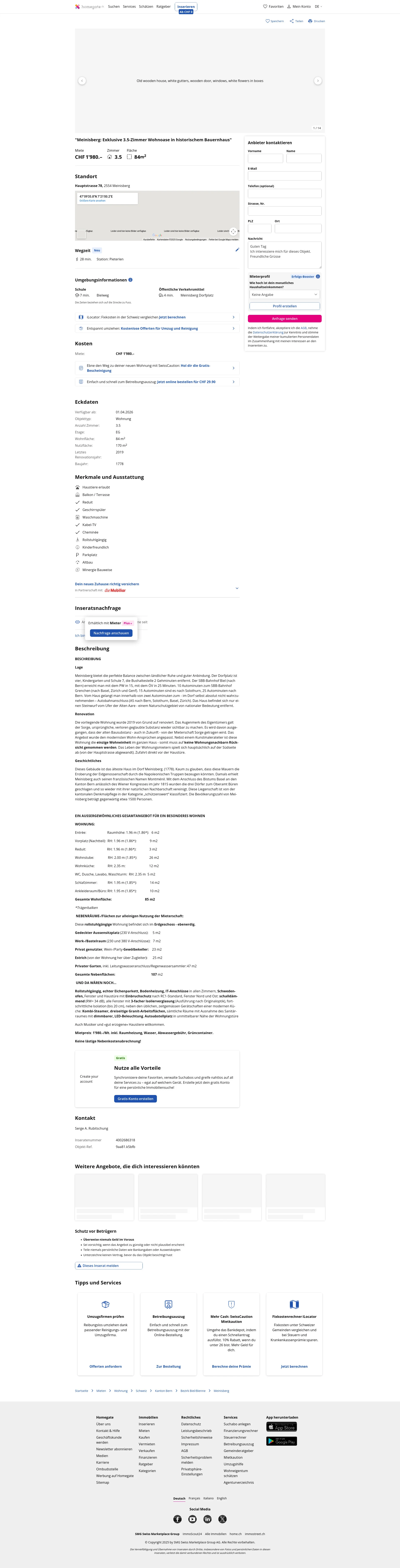 Mietpreis: 1’980.-/Mt. inkl. Raumheizung, Wasser, Abwassergebühr, Grüncontainer.
