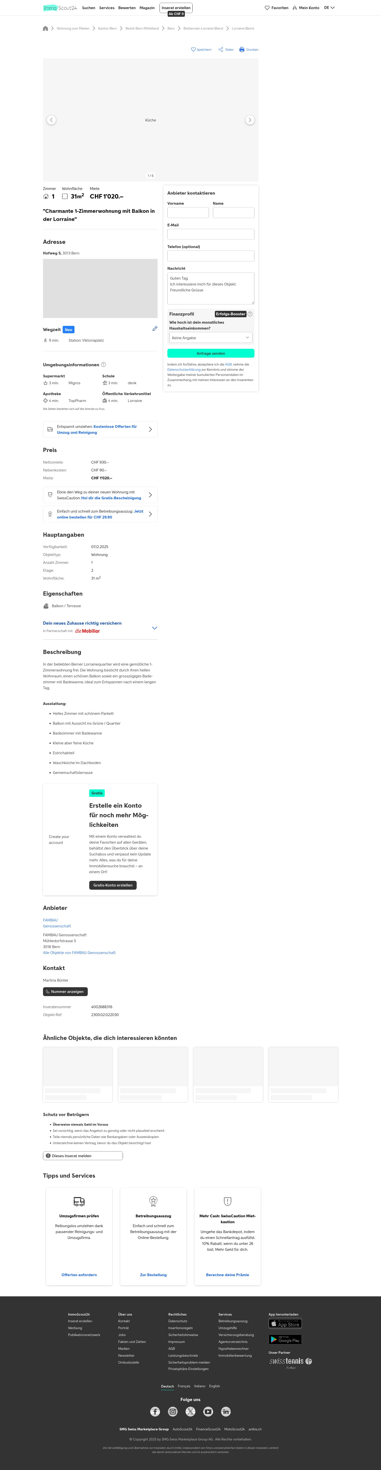 | Rent | CHF 1,020 /mo |