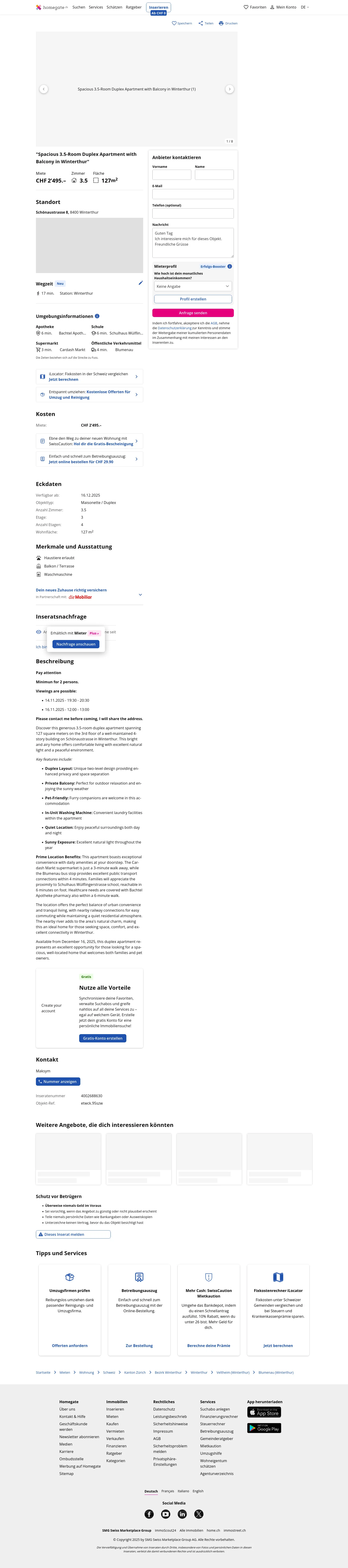 Die Lage bietet das perfekte Gleichgewicht zwischen städtischer Bequemlichkeit und ruhigem Wohnen, mit nahegelegenen Bahnverbindungen für einfaches Pendeln, während eine ruhige Wohnatmosphäre erhalten bleibt. Der nahegelegene Fluss trägt zu dem natürlichen Charme der Gegend bei, was diese zu einem idealen Zuhause für diejenigen macht, die nach Raum, Komfort und hervorragender Anbindung in Winterthur suchen.