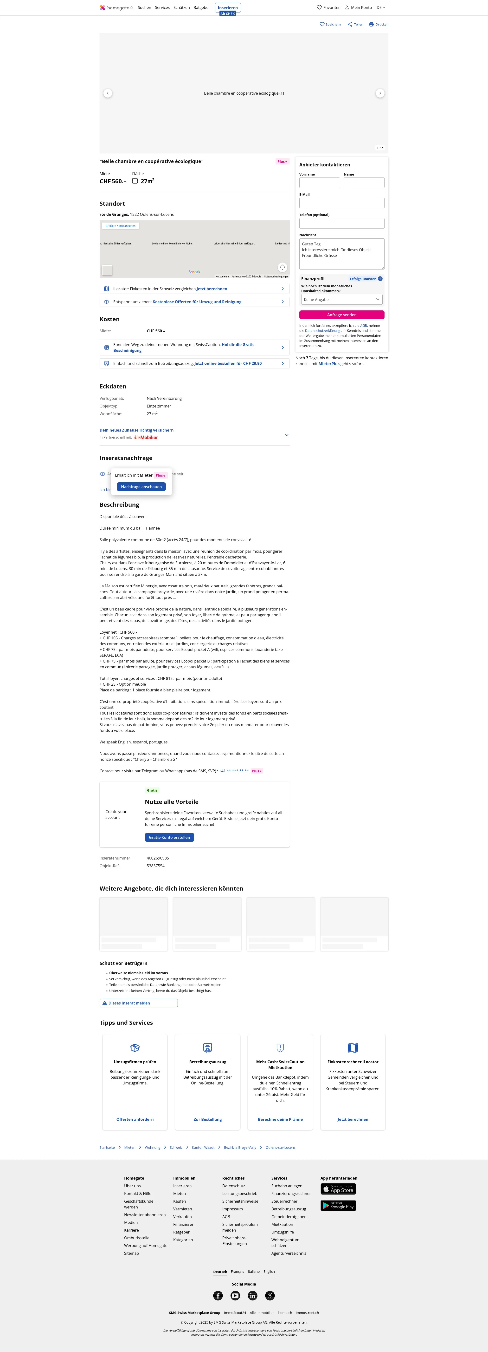 Nettomiete: CHF 560.-