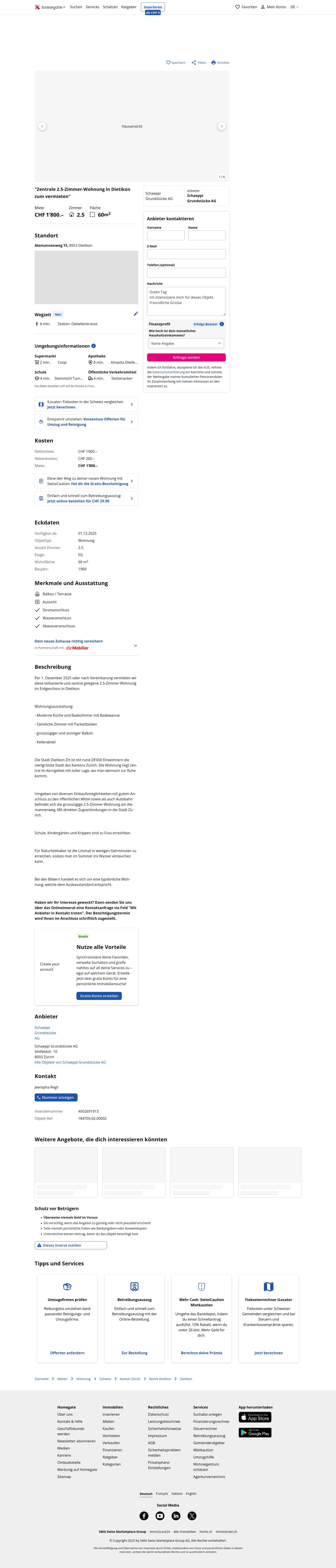 Per 1. Dezember 2025 oder nach Vereinbarung vermieten wir diese teilsanierte und zentral gelegene 2.5-Zimmer-Wohnung im Erdgeschoss in Dietikon.