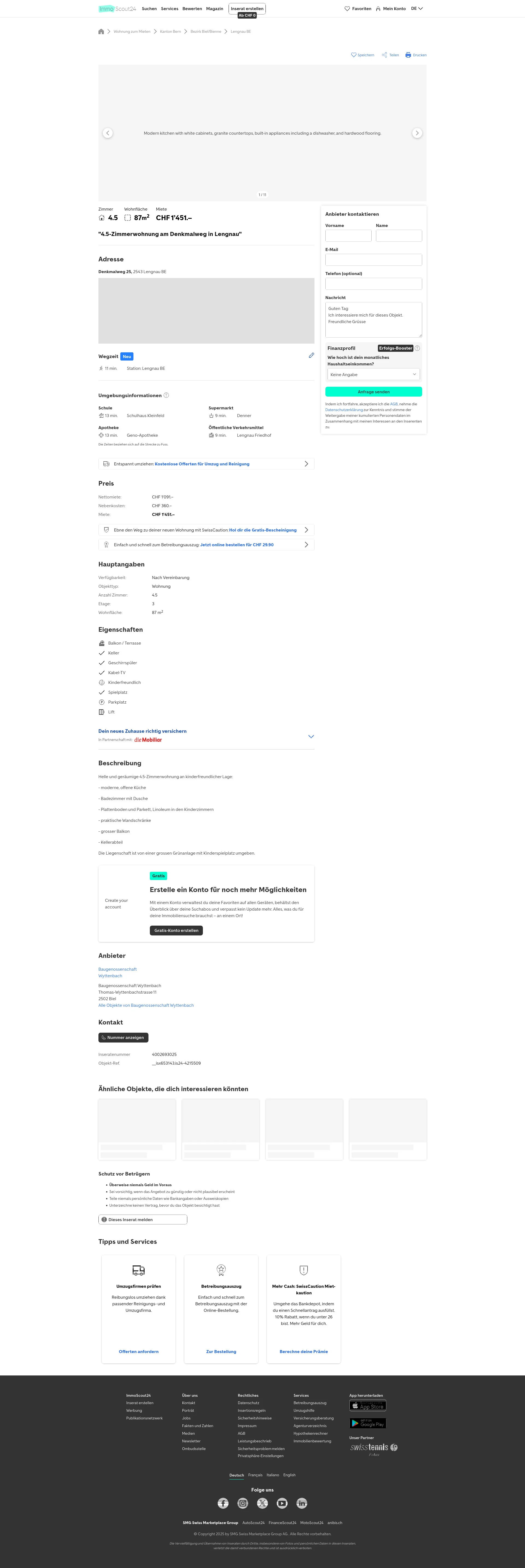 | Address | Denkmalweg 25, 2543 Lengnau BE |