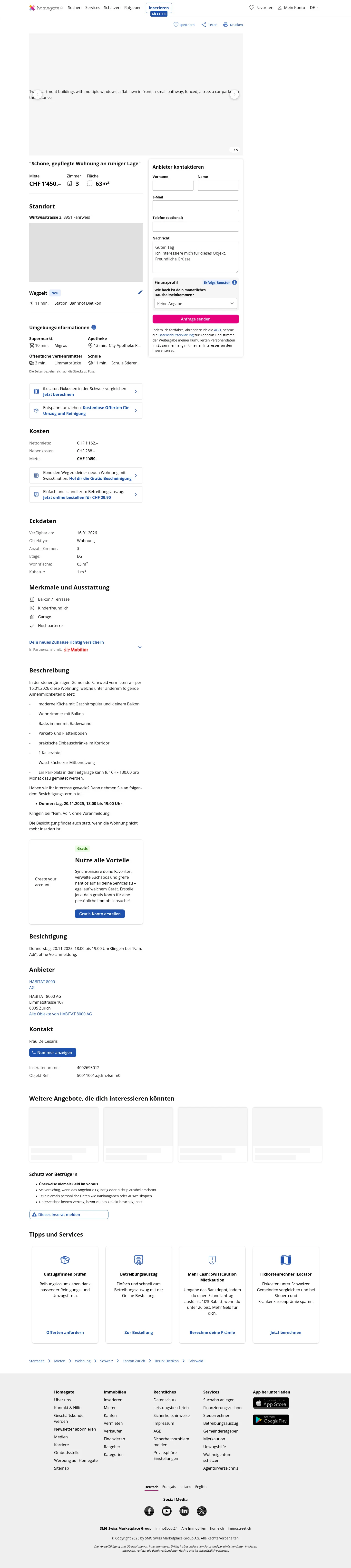 In der steuergünstigen Gemeinde Fahrweid vermieten wir per 16.01.2026 diese Wohnung, welche unter anderem folgende Annehmlichkeiten bietet: