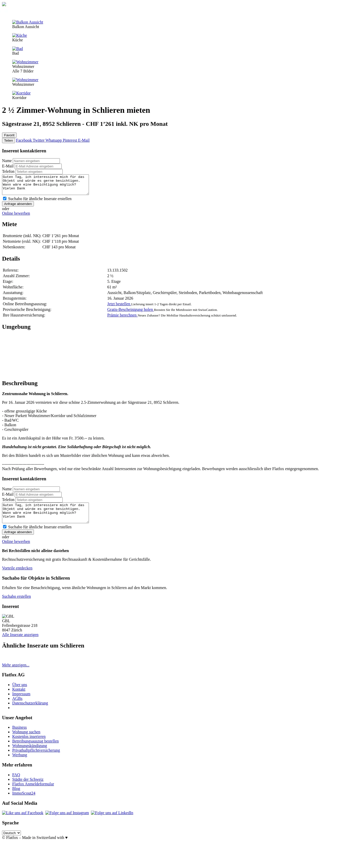 Per 16. Januar 2026 vermieten wir diese schöne 2.5-Zimmerwohnung an der Sägestrasse 21, 8952 Schlieren.