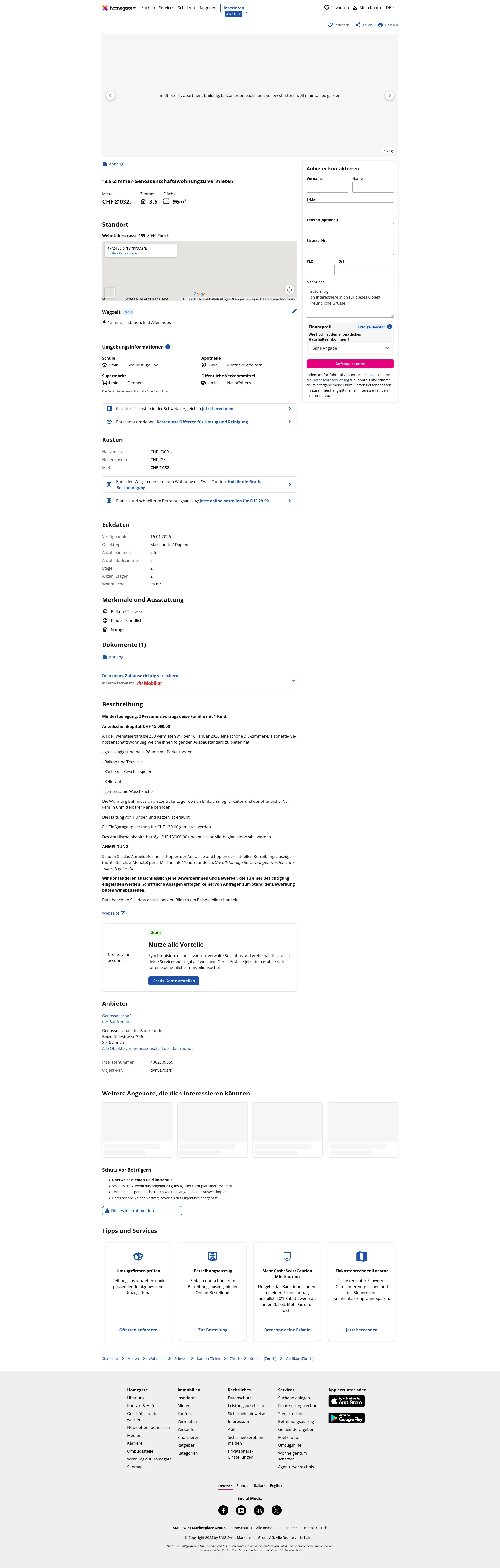 Wir kontaktieren ausschliesslich jene Bewerberinnen und Bewerber, die zu einer Besichtigung eingeladen werden. Schriftliche Absagen erfolgen keine; von Anfragen zum Stand der Bewerbung bitten wir abzusehen.