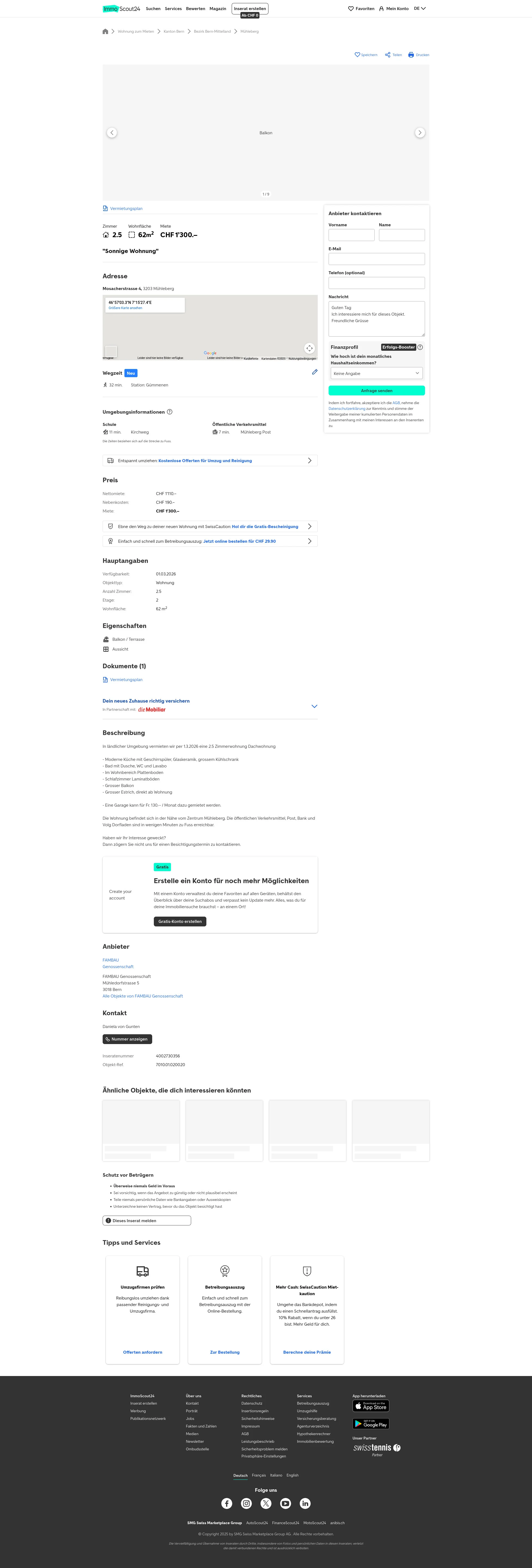 | Rent | CHF 1,300 /mo |