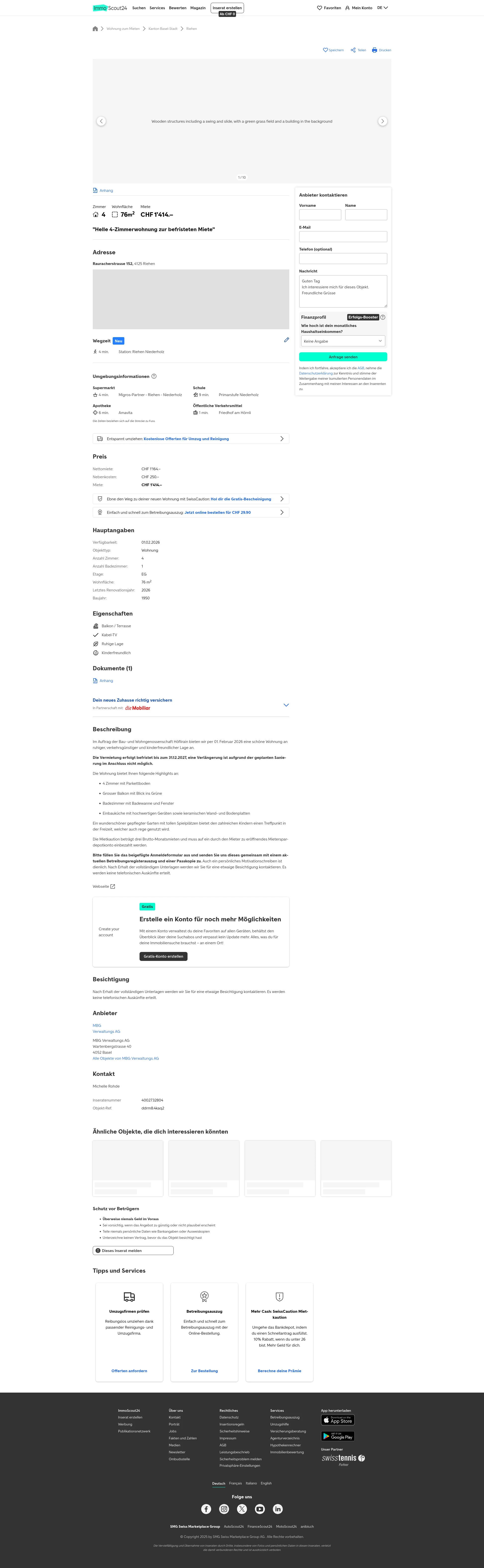 | Belegungsvorschriften | Befristete Vermietung bis zum 31.12.2027 (wegen geplanter Sanierung keine Verlängerung möglich). Einzureichen: ausgefülltes Anmeldeformular, aktueller Betreibungsregisterauszug und Passkopie; ein persönliches Motivationsschreiben ist dienlich. Es werden keine telefonischen Auskünfte erteilt. |