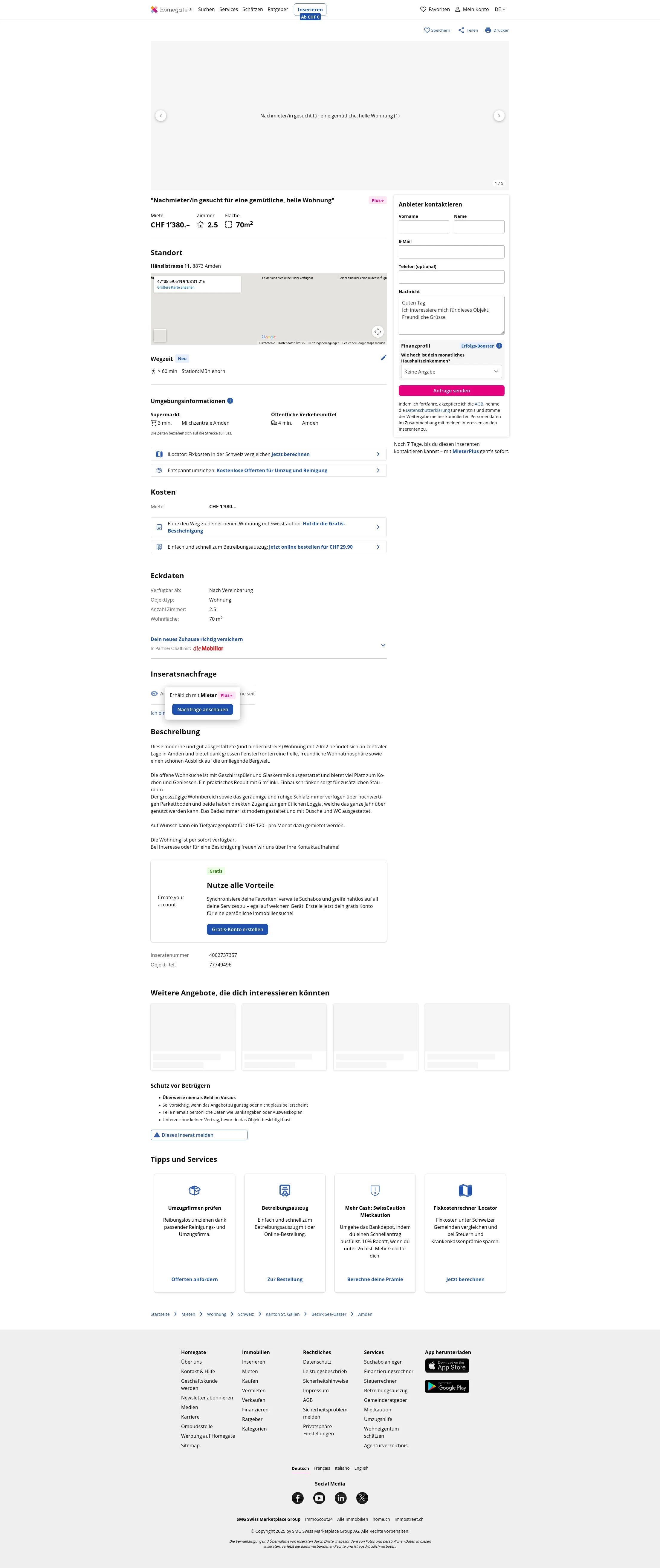 | Rent | CHF 1,380 /mo |