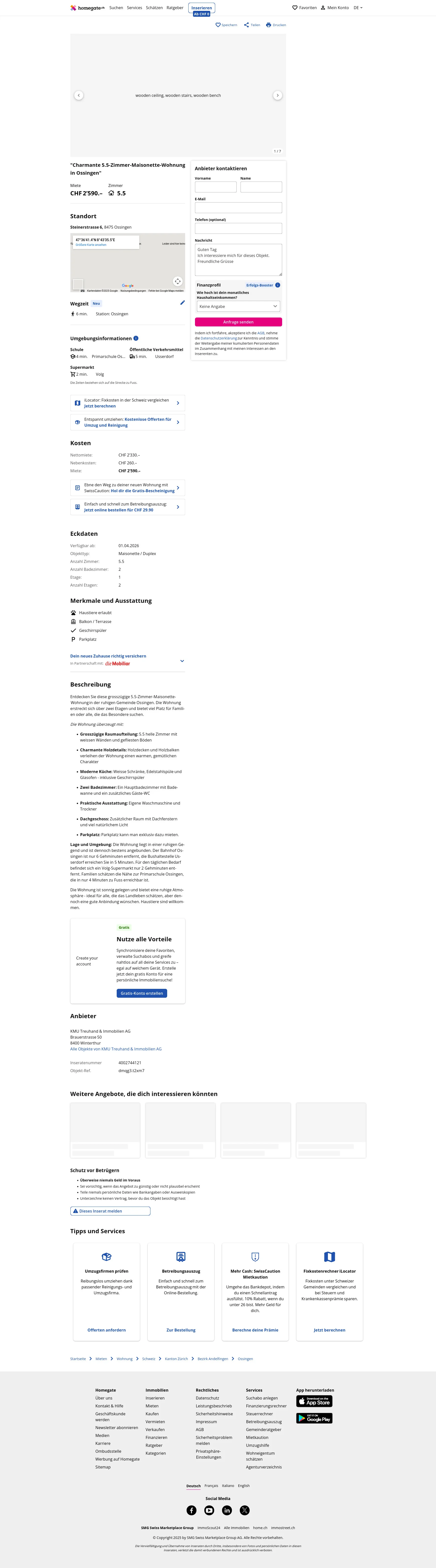 Entdecken Sie diese grosszügige 5.5-Zimmer-Maisonette-Wohnung in der ruhigen Gemeinde Ossingen. Die Wohnung erstreckt sich über zwei Etagen und bietet viel Platz für Familien oder alle, die das Besondere suchen.