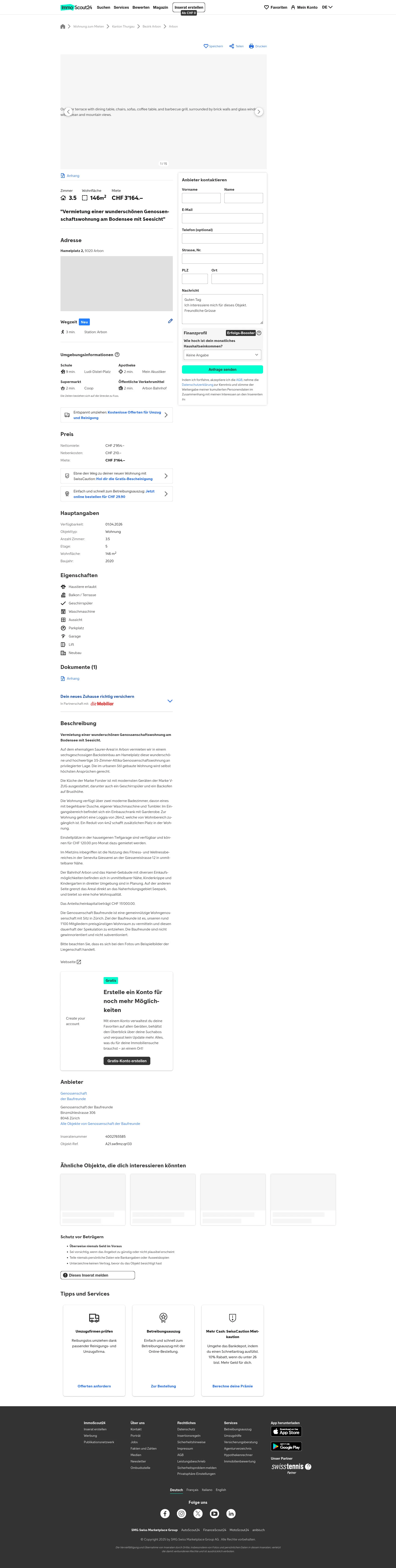 Vermietung einer wunderschönen Genossenschaftswohnung am Bodensee mit Seesicht.