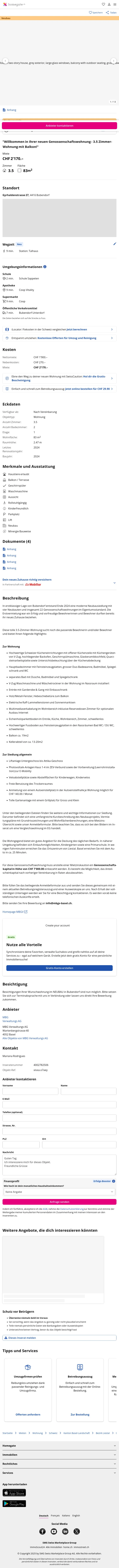 Unter den beiliegenden Dateien finden Sie weitere und wichtige Informationen zur Siedlung. Darunter befindet sich eine umfangreiche Kurzbeschreibung des Neubauprojekts, Vermietungspläne mit Grundrisszeichnungen und Wohnflächenberechnungen, eine Mietzins-Übersicht sowie unser Anmeldeformular. Bitte beachten Sie, dass es sich bei den Bildern im Inserat um eine Vergleichswohnung im EG handelt.