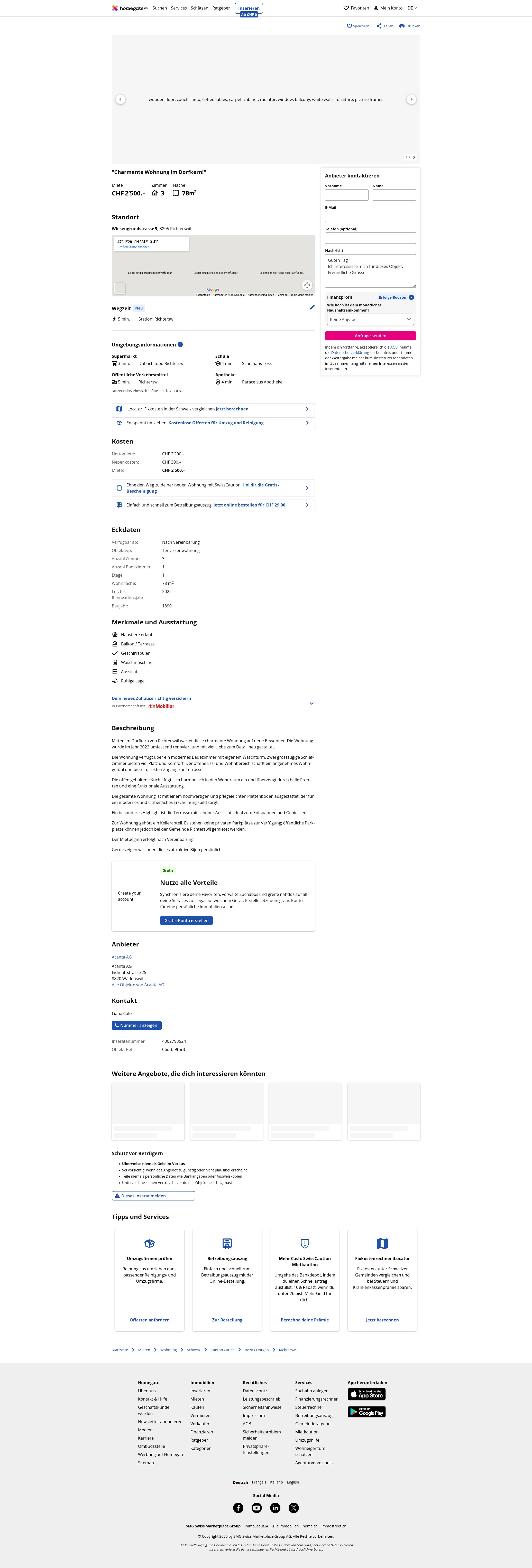 Mitten im Dorfkern von Richterswil wartet diese charmante Wohnung auf neue Bewohner. Die Wohnung wurde im Jahr 2022 umfassend renoviert und mit viel Liebe zum Detail neu gestaltet.