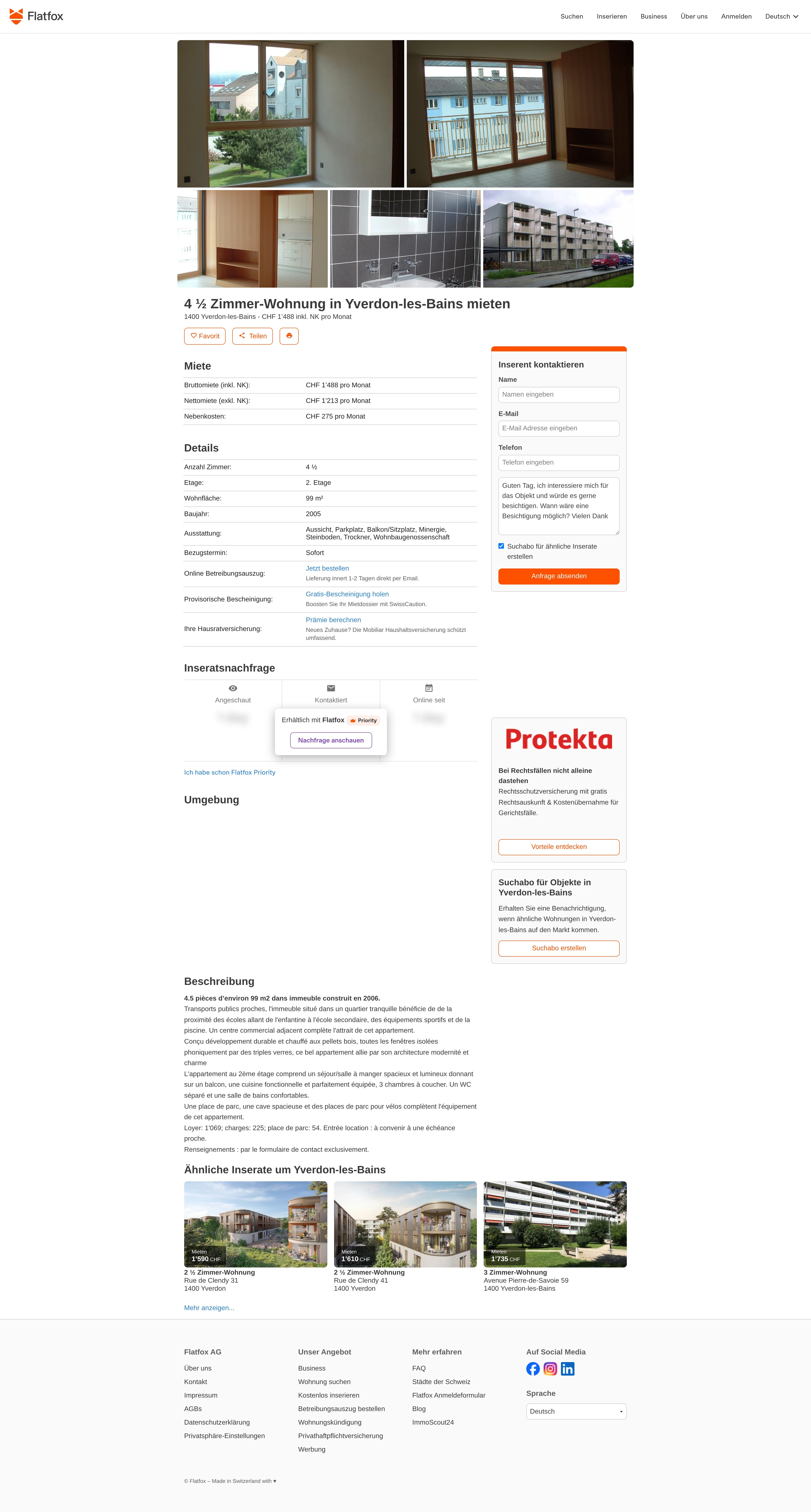 This 4.5-room apartment in Yverdon-les-Bains (1400) offers 99 m² of living space in a building constructed in 2006.