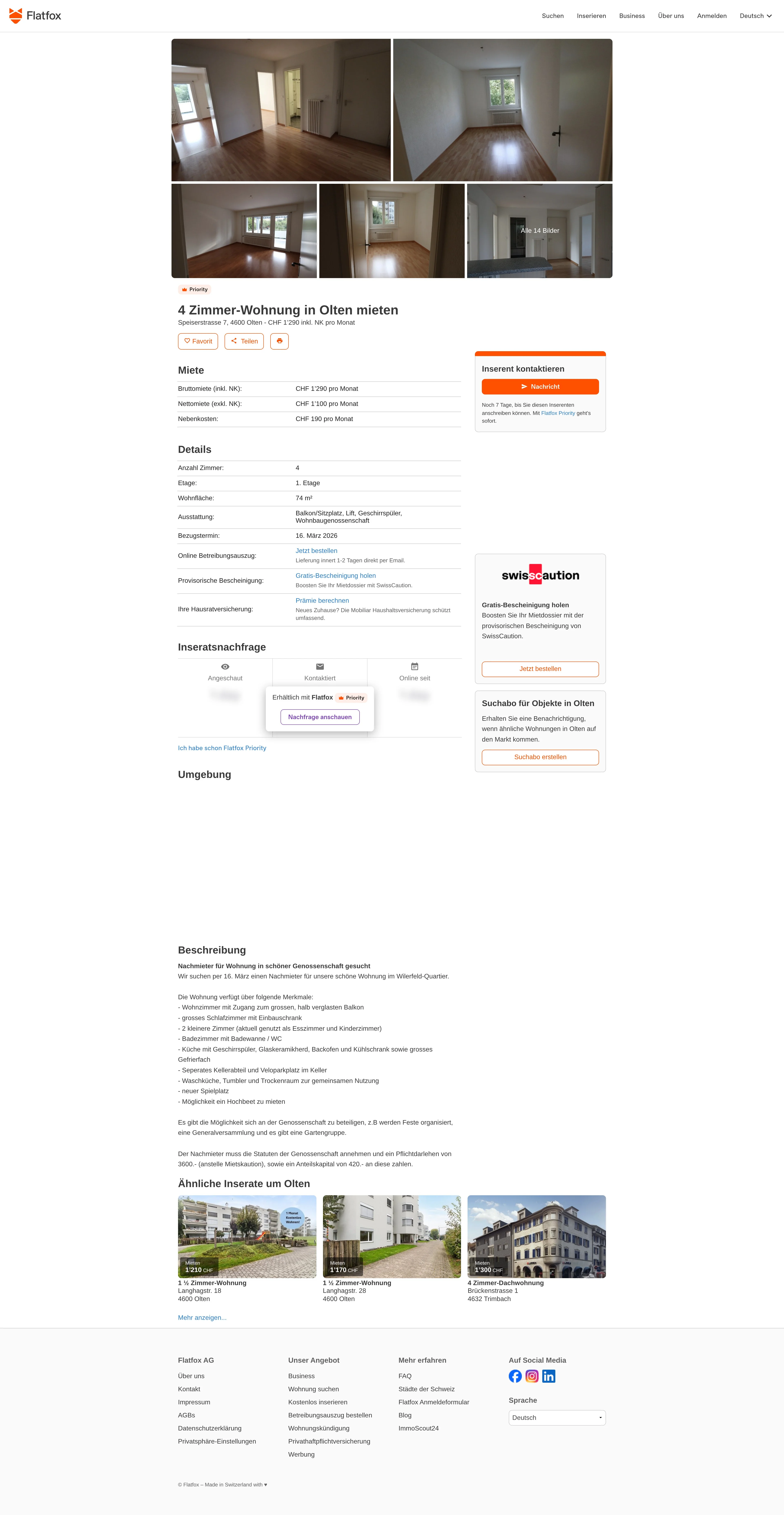 This 4.0-room apartment in Olten (4600) offers 74 m² of living space.
