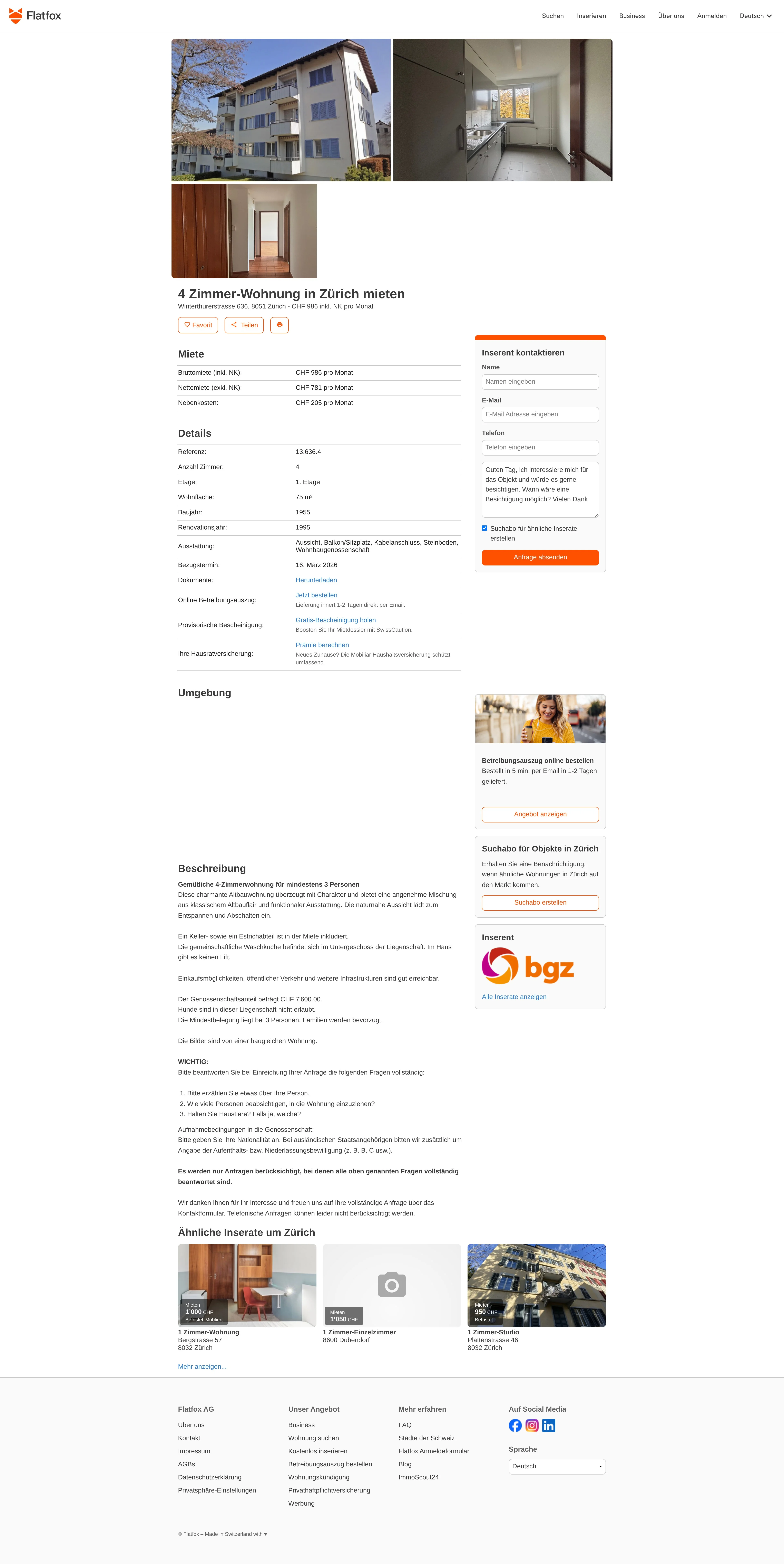 This 4.0-room apartment in Zurich (8051) offers 75 m² of living space.