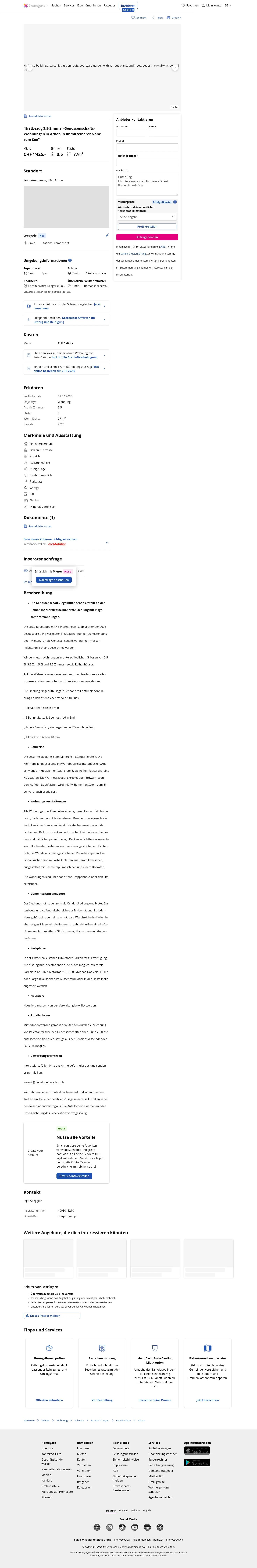 This 3.5-room apartment in Arbon (9320) offers 77 m² of living space.