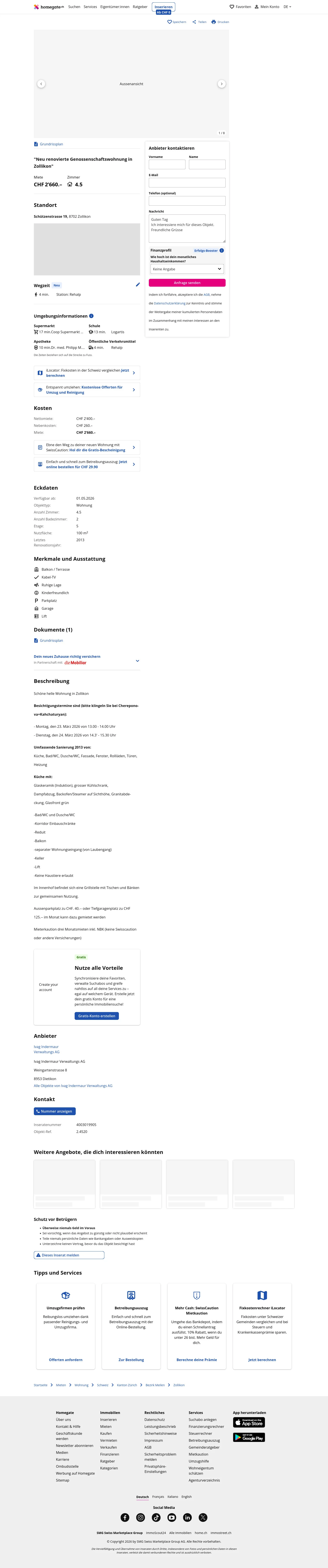 Deposit: Three months' rent including NBK (no Swisscaution or other insurances)