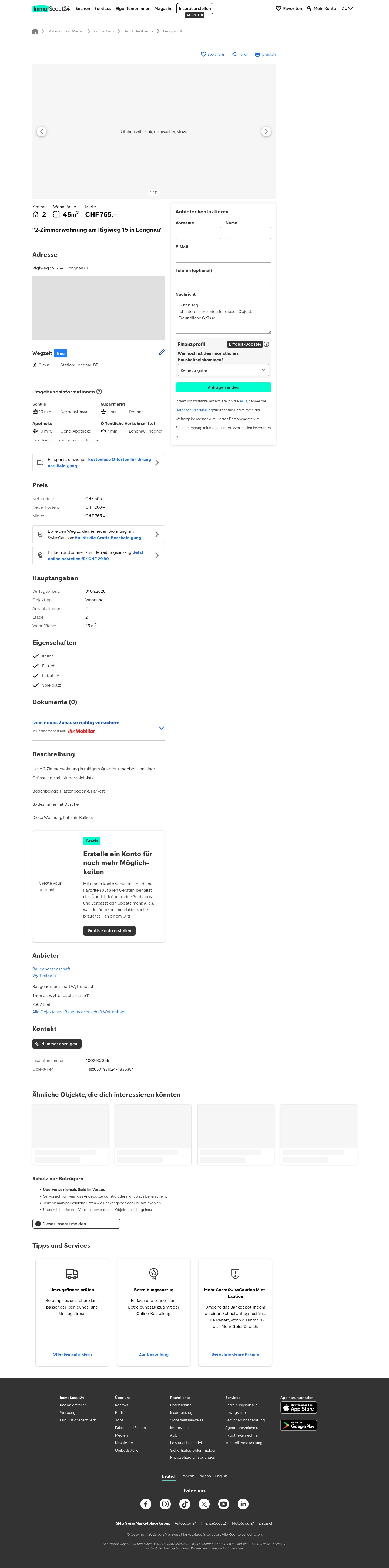 This 2.0-room apartment in Lengnau (2543) offers 45 m² of living space.