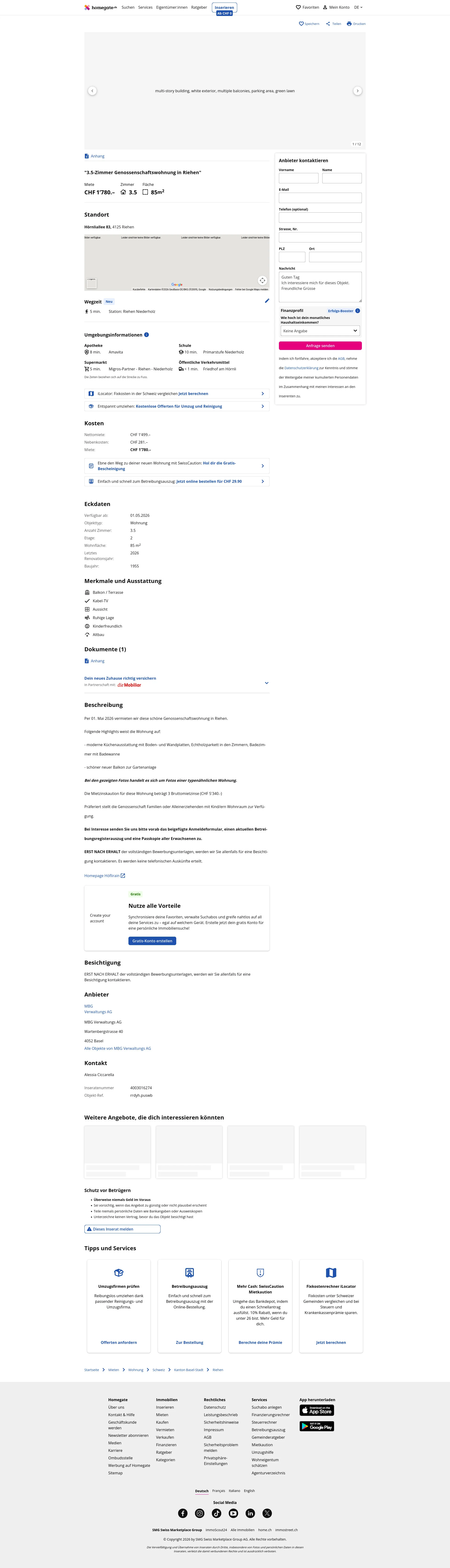This 3.5-room apartment in Riehen (4125) offers 85 mÂČ of living space.