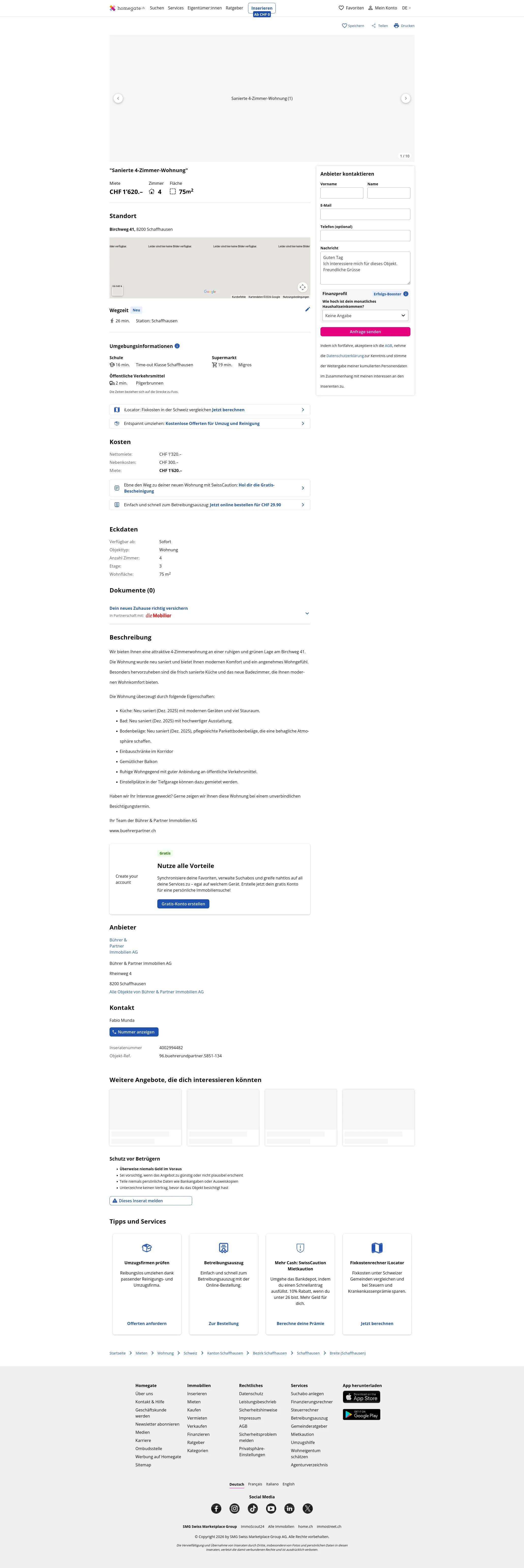This 4.0-room apartment at Birchweg 41, 8200 Schaffhausen offers 75 m² of living space and was newly renovated. The apartment features a freshly renovated kitchen and a new bathroom, providing modern comfort.