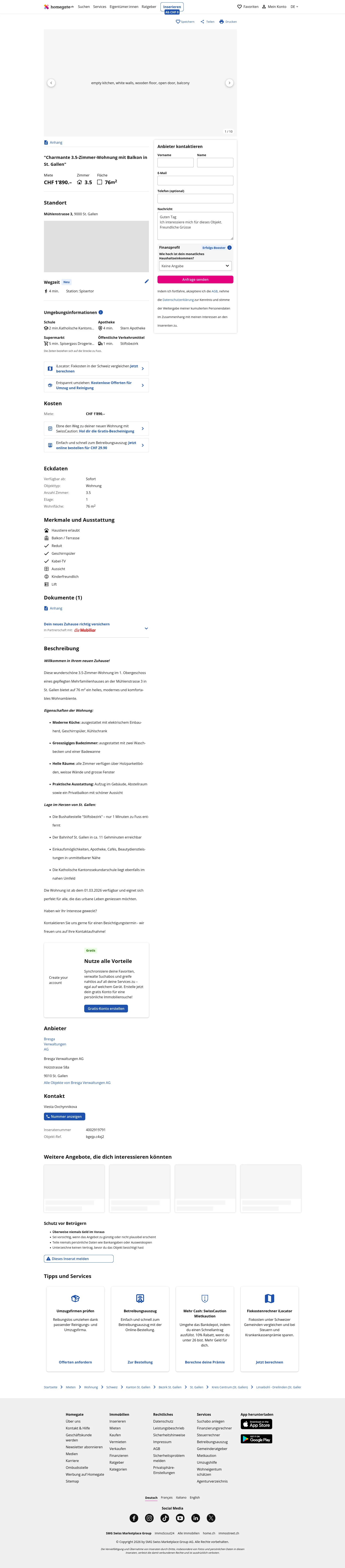 This 3.5-room apartment at Mühlenstrasse 3, St. Gallen (9000) is located on the 1st floor of a well-maintained multi-family building and offers 76 m² of living space.
