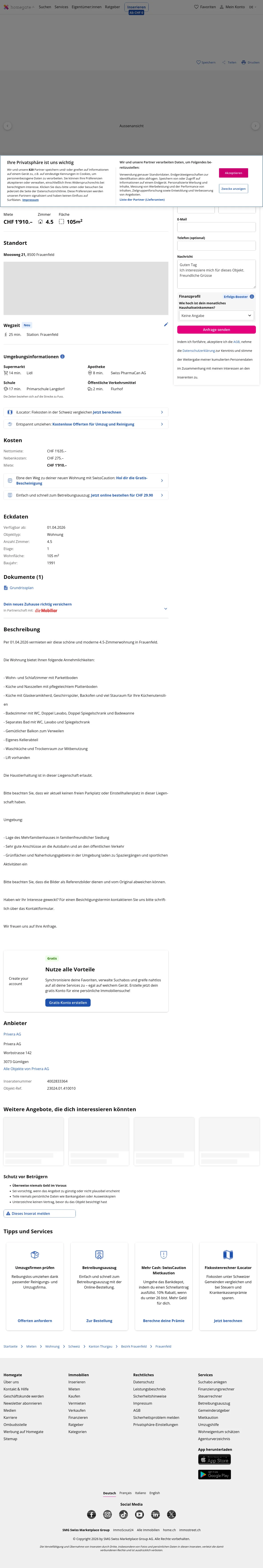 This 4.5-room apartment in Frauenfeld (8500) offers 105 m² of living space.