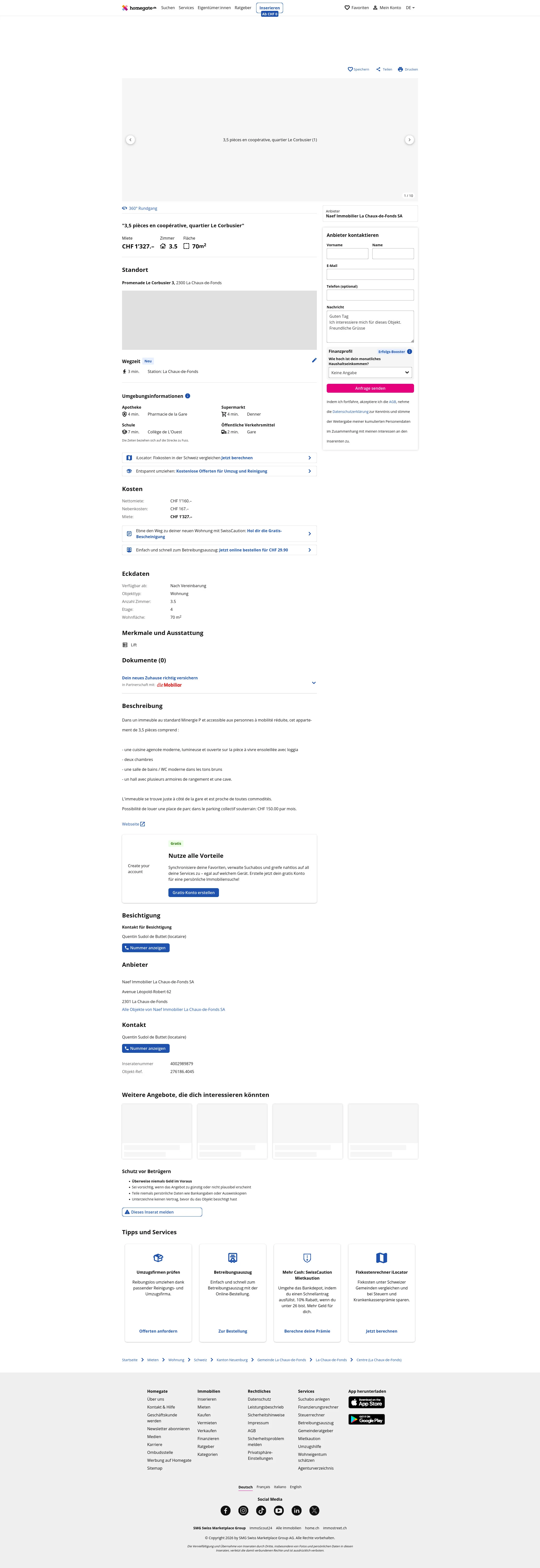 This 3.5-room apartment in La Chaux-de-Fonds (2300) offers 70 m² of living space.
