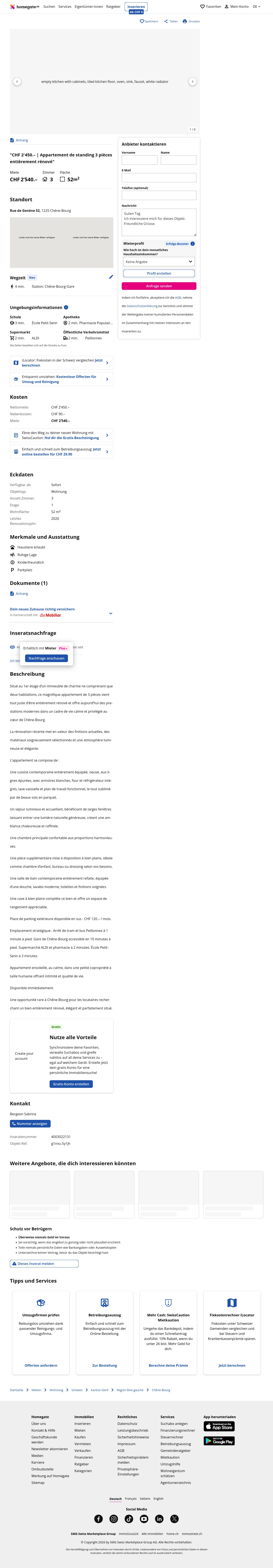 This 3.0-room apartment on the 1st floor of a small building with only two dwellings was completely renovated and offers modern fittings in a quiet, privileged living environment in the heart of Chêne-Bourg (1225).