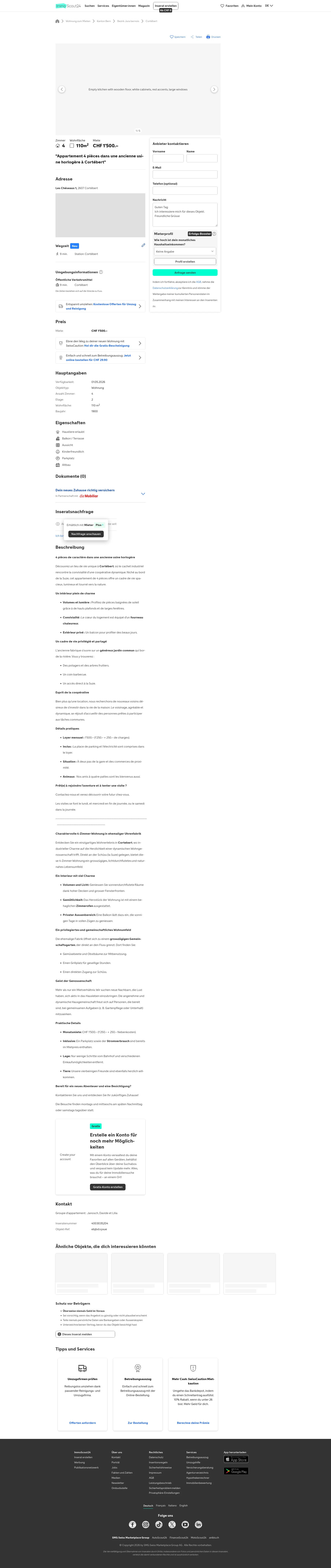 This apartment in Cortébert offers 4.0 rooms and 110 m² of living space. It is located on the Suze and combines industrial character with cooperative living. The apartment is part of the cooperative Wohngenossenschaft.