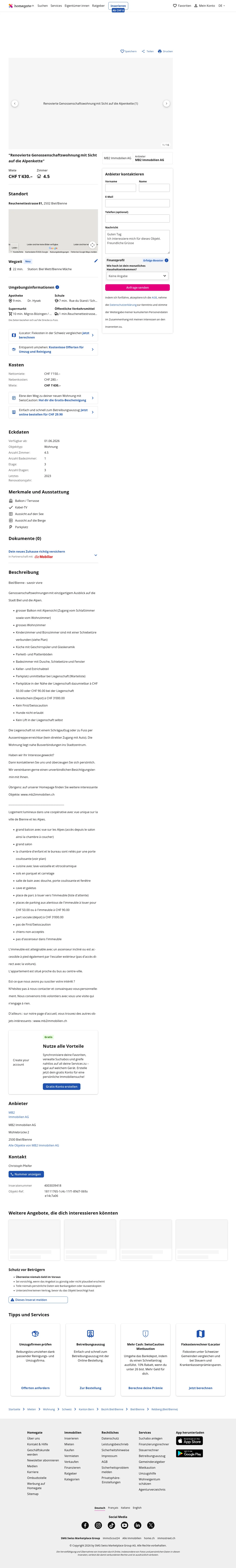 This 4.5-room apartment in Biel (2502) belongs to the cooperative Baugenossenschaft Im vogelsang.