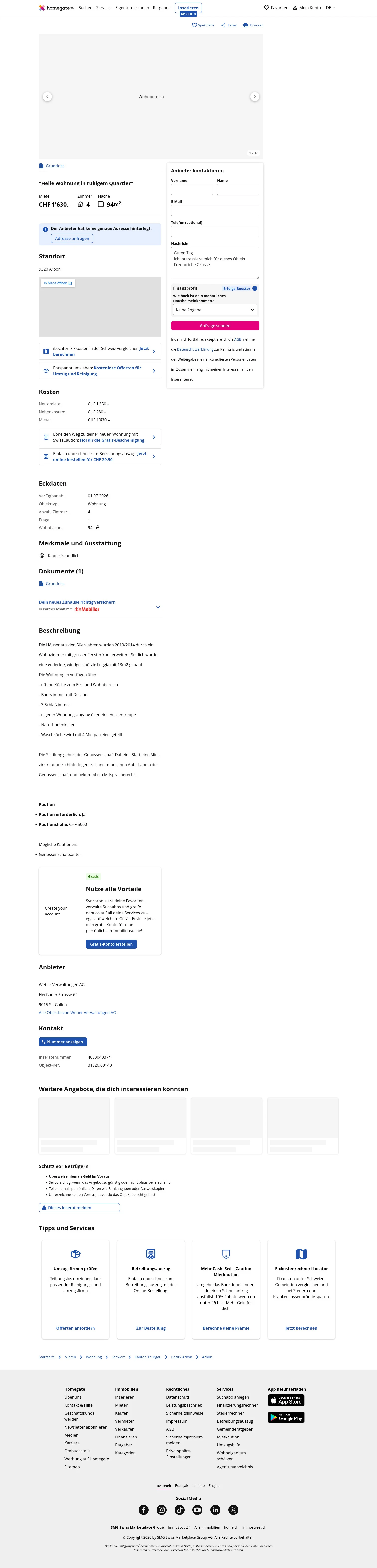 This 4.0-room apartment in Arbon (9320) offers 94 m² of living space.