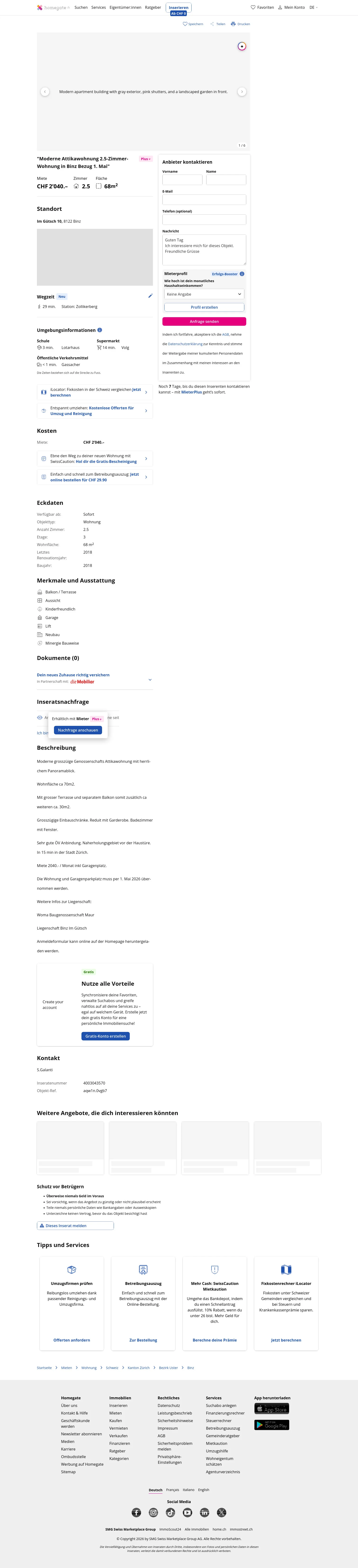 This modern, spacious cooperative attic apartment with panoramic views is located in Binz (8122). The apartment offers 2.5 rooms and 68 m² of living space.