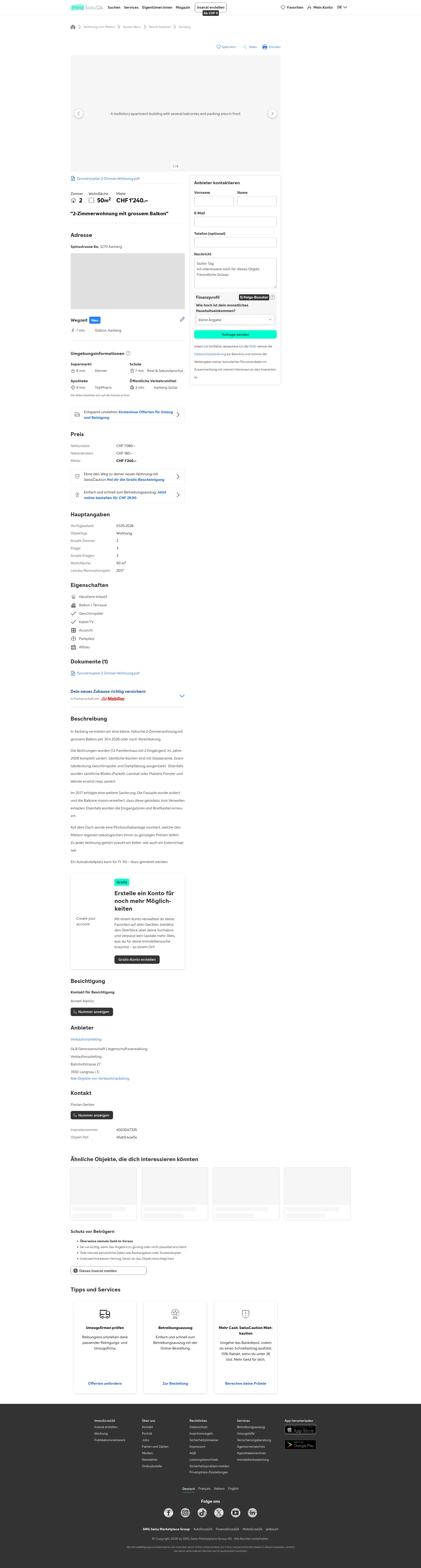 This 2.0-room apartment in Aarberg (3270) offers 50 m² of living space.