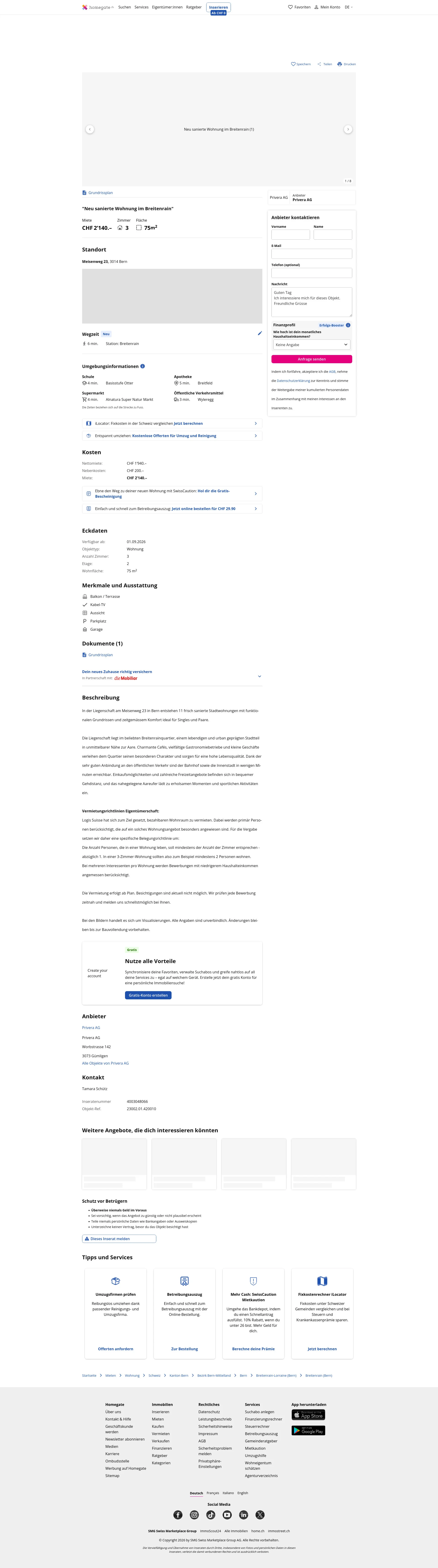 The property is located in the Breitenrain quarter, a lively, urban neighbourhood close to the Aare. The area features cafes, a variety of restaurants and small shops. Good public transport connections provide quick access to the main station and the city centre. Shops and leisure facilities are within easy walking distance, and the nearby riverside offers recreational and sporting opportunities.