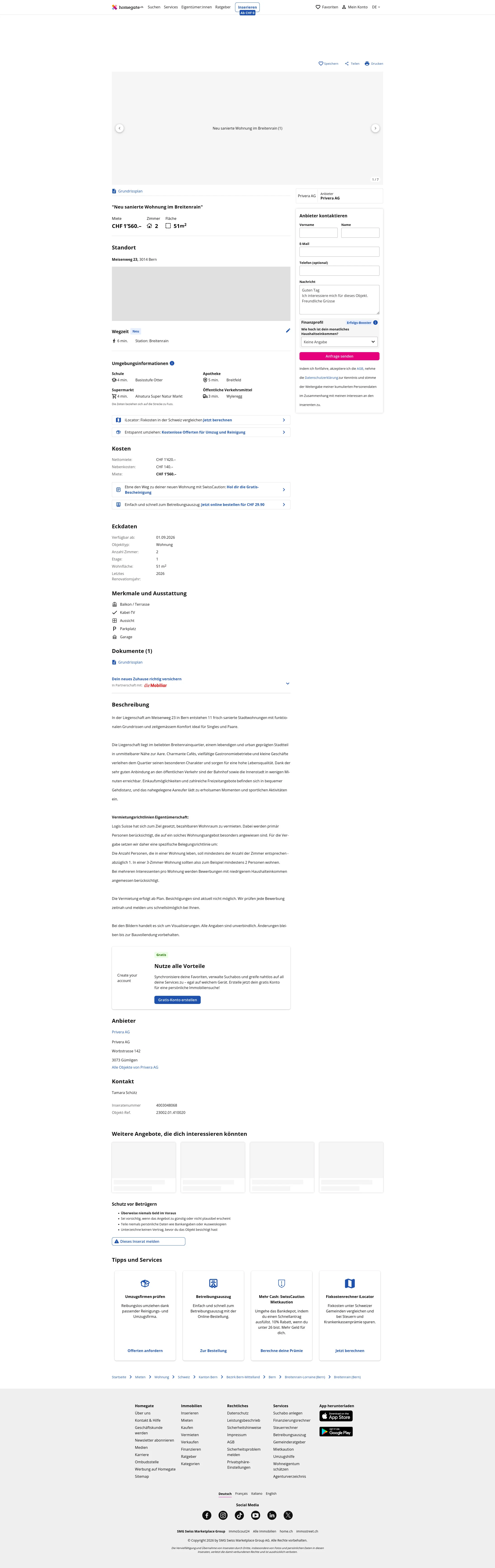 The building is located in the popular Breitenrain quarter, a lively, urban neighbourhood close to the Aare. Cafés, diverse restaurants and small shops characterise the area. With very good public transport connections, the main station and the city centre are reachable within a few minutes. Shops and recreational amenities are within walking distance, and the nearby riverbank of the Aare invites relaxation and sporting activities.