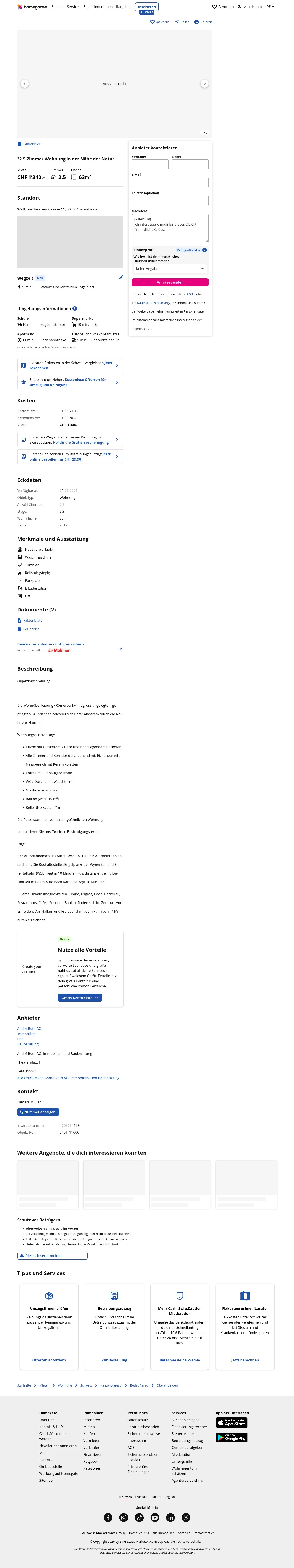 This 2.5-room apartment in Oberentfelden (5036) offers 63 mÂČ of living space.