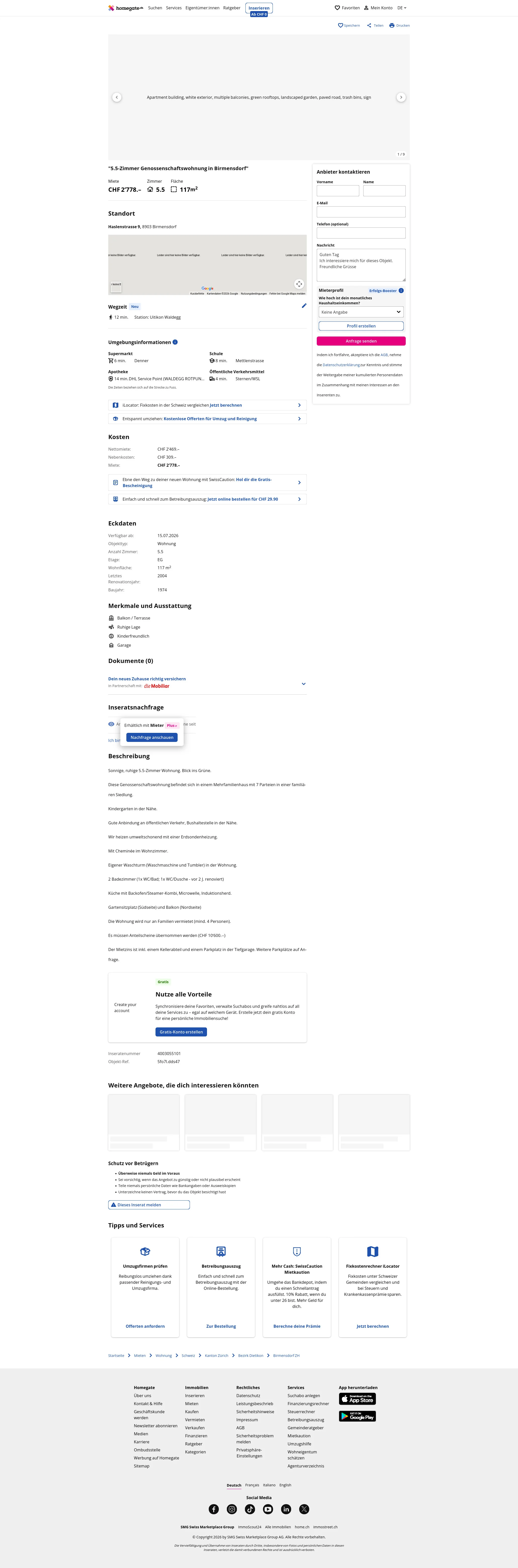 This 5.5-room apartment in Birmensdorf (8903) offers 117 m² of living space.