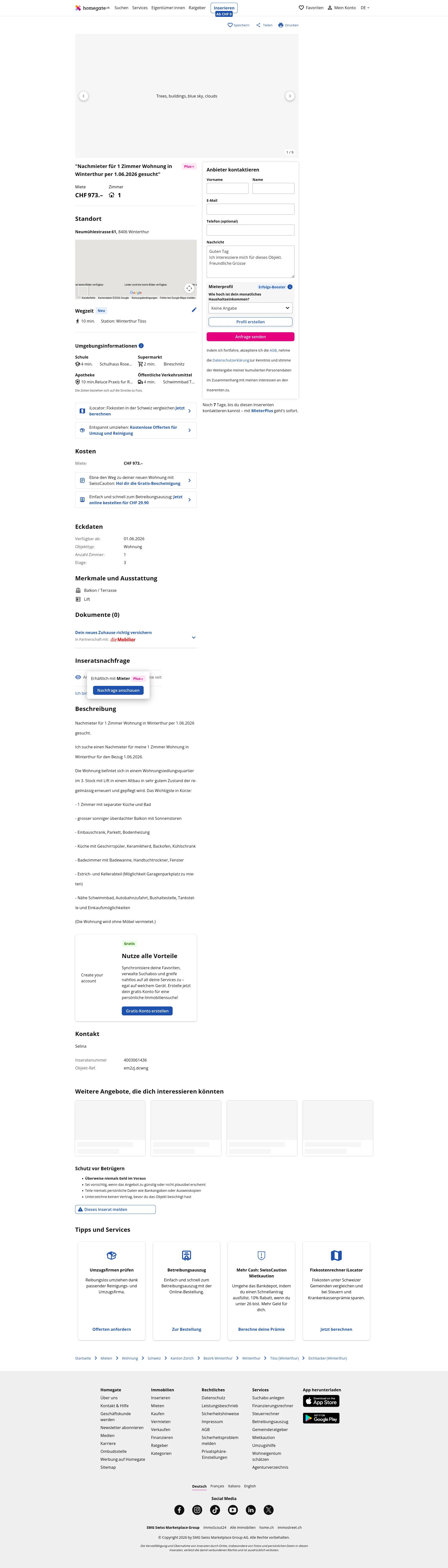 Rent: CHF 973/month