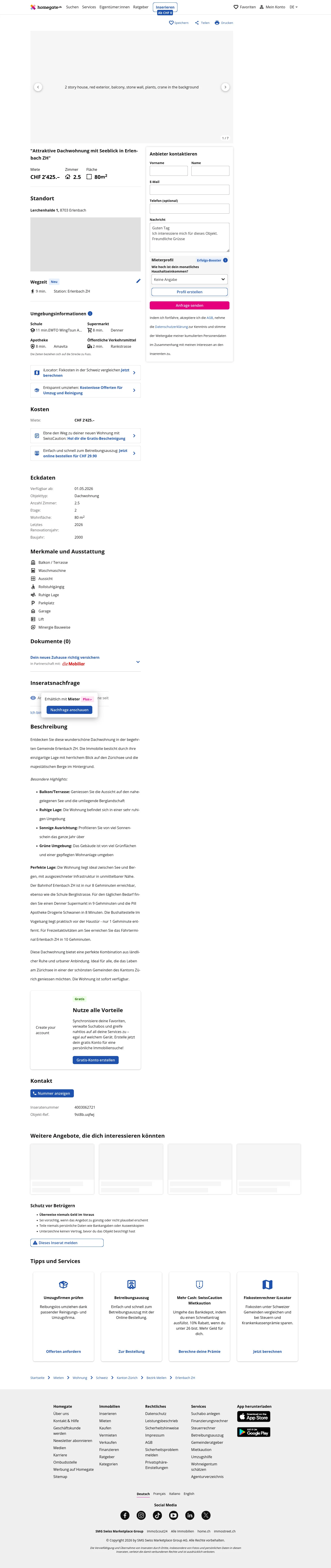 This 2.5-room top-floor apartment in Erlenbach (8703) offers 80 m² of living space.