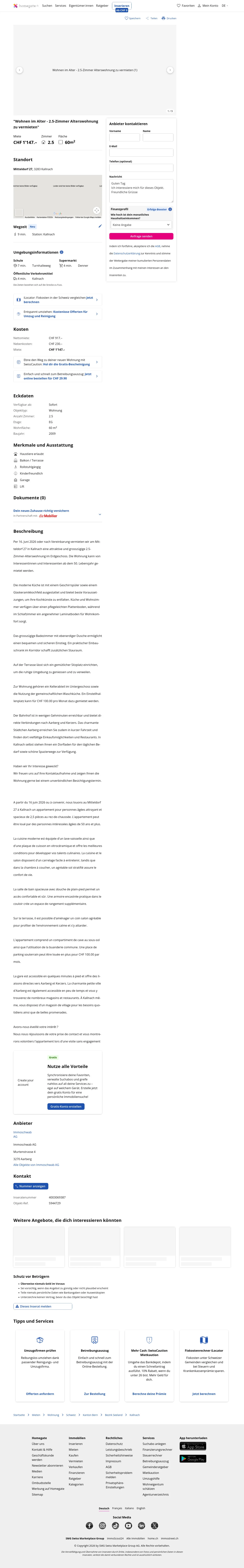 This 2.5-room apartment on the ground floor in Kallnach (3283) offers 60 m² of living space.