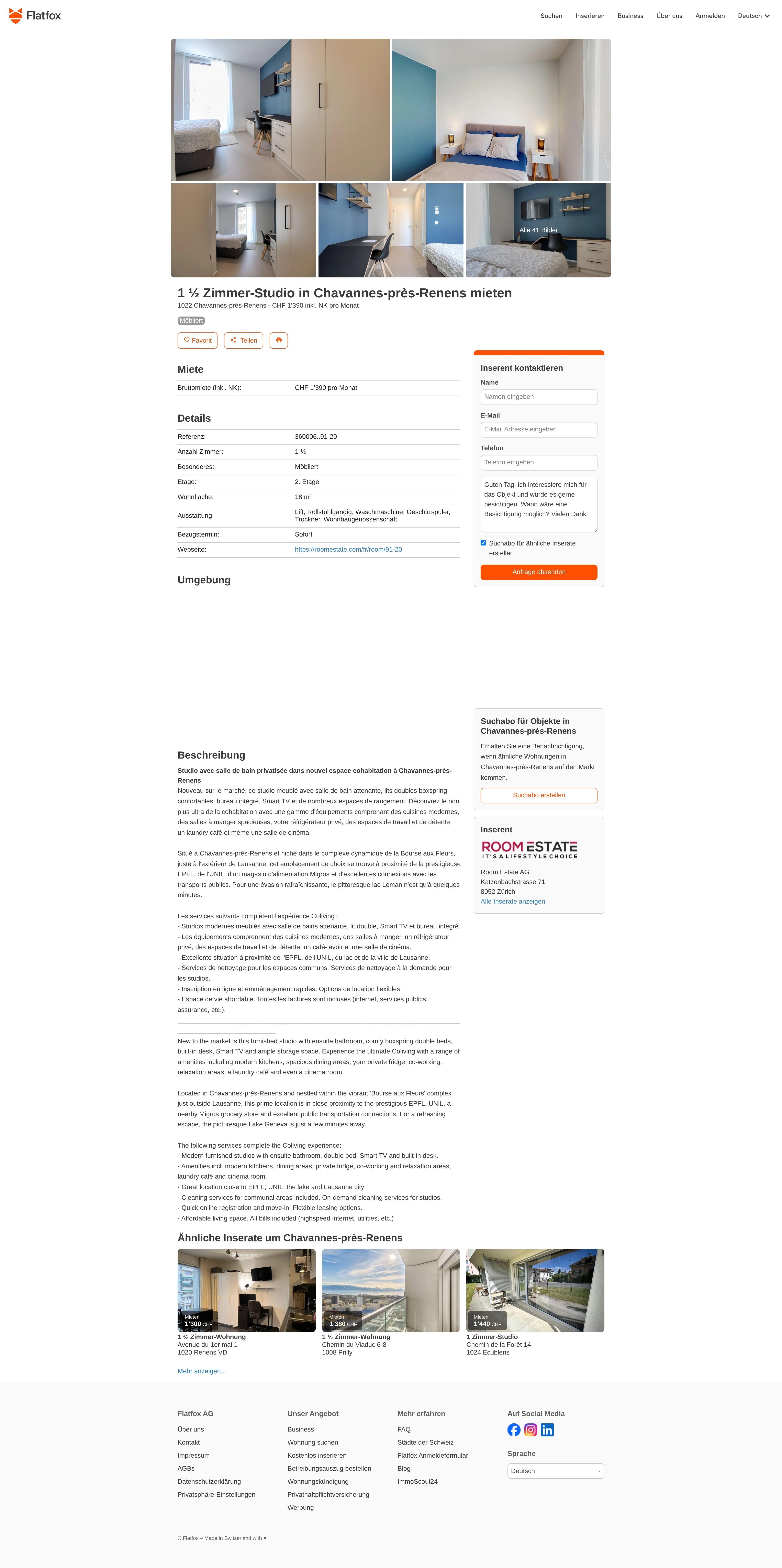 This furnished studio is located in the "Bourse aux Fleurs" complex in Chavannes-près-Renens (1022). It offers 1.5 rooms and 18 m² of living space.
