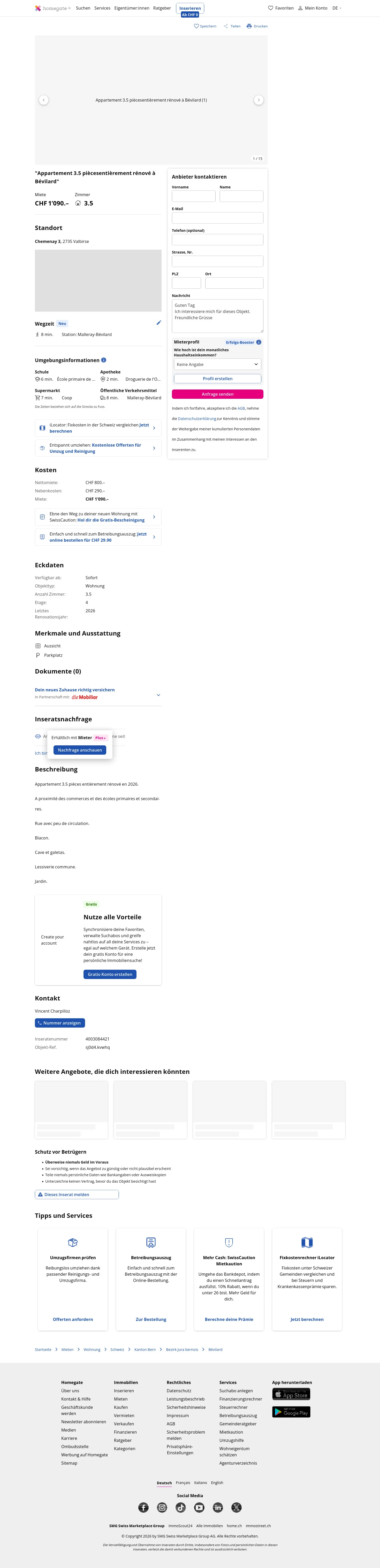| Rent | CHF 1,090 /mo |