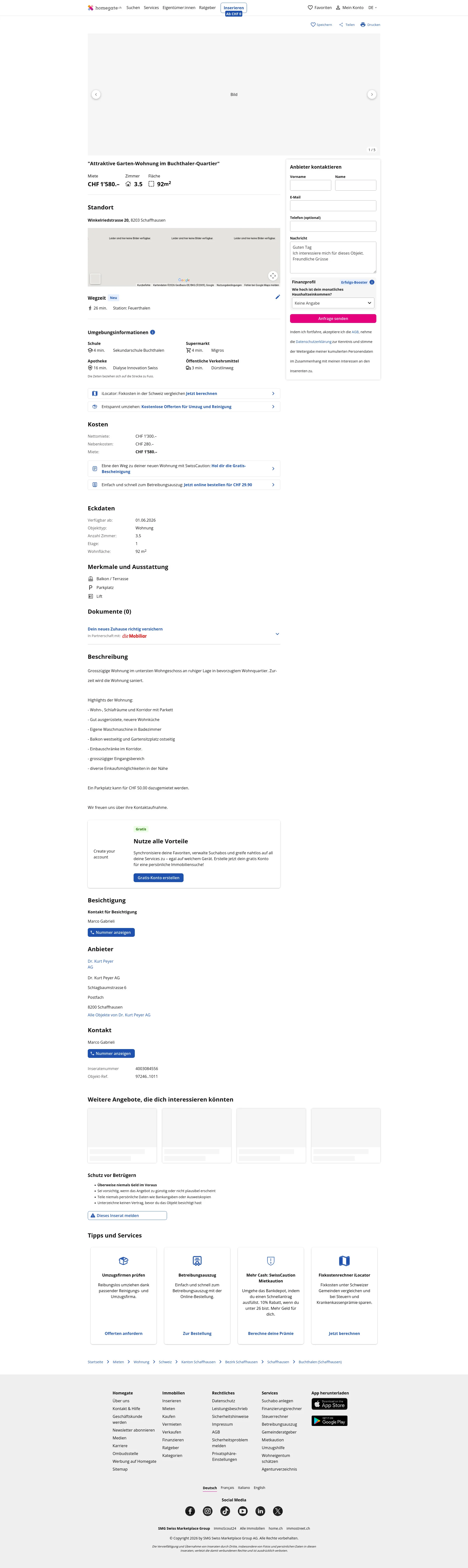 This 3.5-room apartment in Schaffhausen (8203) offers 92 m² of living space on the lowest residential floor in a quiet, preferred neighborhood. The apartment is currently being renovated.