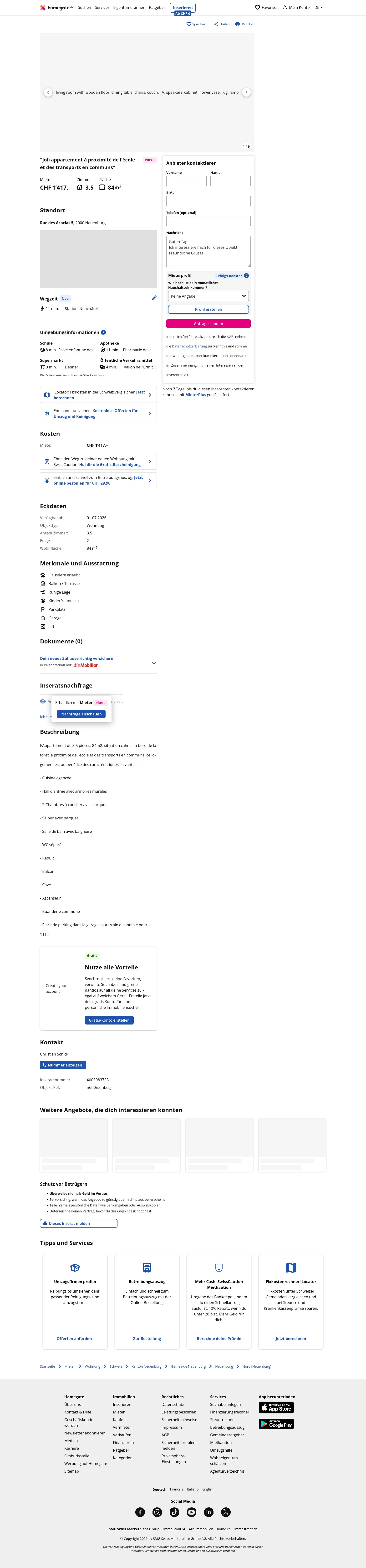 Rent: CHF 1,417/month