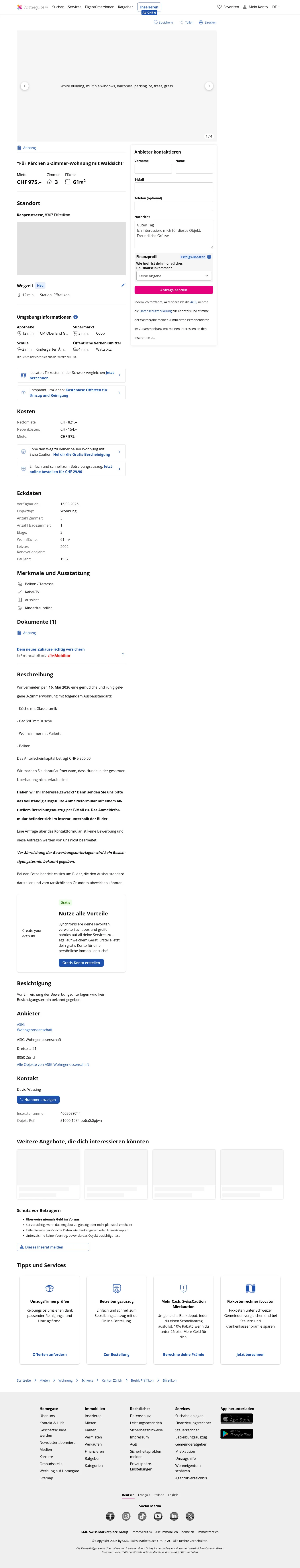 This 3.0-room apartment in Illnau-Effretikon (8307) offers 61 m² of living space.