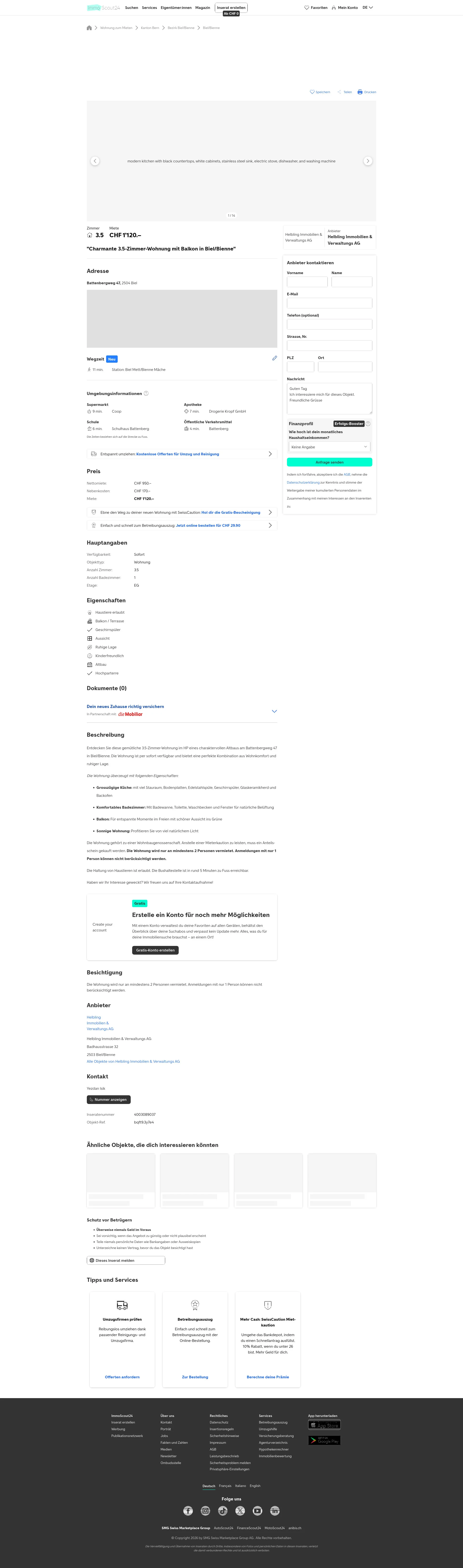 This 3.5-room apartment in Biel/Bienne (2504) is located on the raised ground floor of a characterful older building at Battenbergweg 47 and is available immediately.